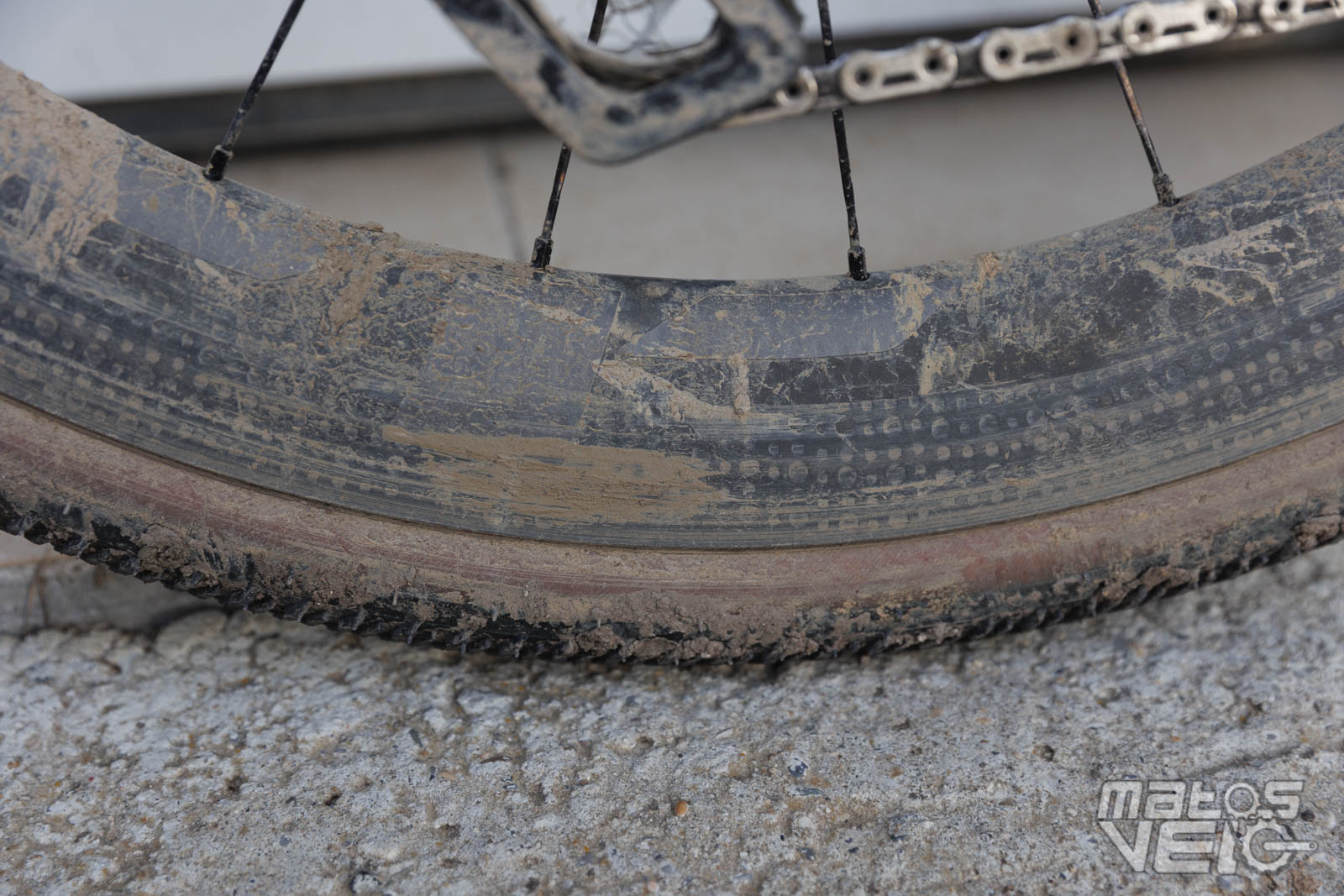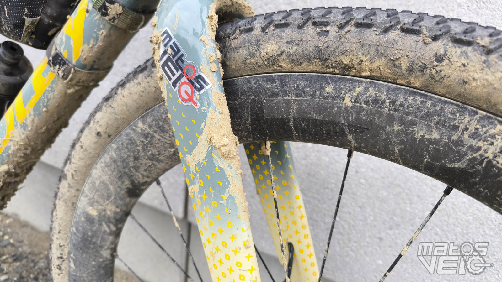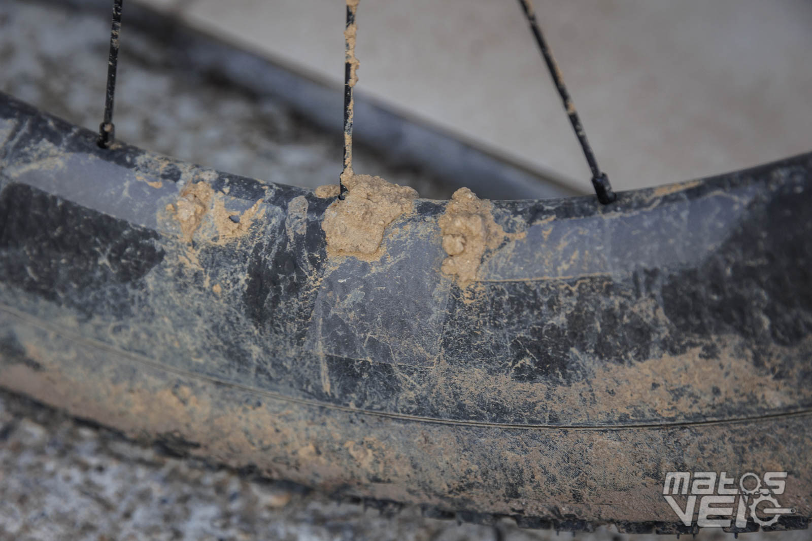 Les jantes se sont montrées solides. Malgré, comme on peut le voir sur ces photos, de la boue qui est restée collée sur la fourche et les haubans, ce qui a eu pour effet de frotter sur la jante pendant plusieurs kilomètres, une fois nettoyée, la jante ne présentait aucun stigmate.