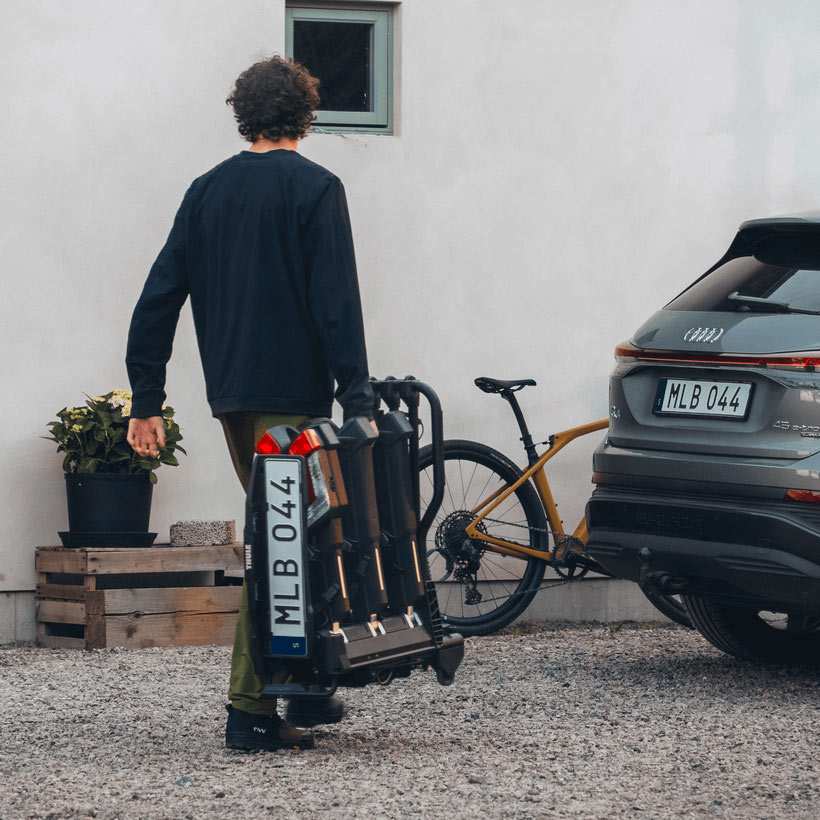 Son nouveau design est doté d'un bras réglable avec sangle et tête pivotante (hérité en partie du Thule Epos), garantissant un maintien sûr pour les cadres de 20 à 90 mm. Que vous transportiez des vélos d'enfants, des vélos électriques jusqu'à 30 kg ou des VTT robustes, le Thule EasyFold 3 est là pour vous. Toujours pliant pour être rangé facilement, il s'enrichit aussi d'un adaptateur pliable pour ajouter 1 vélo, simplifiant les solutions de rangement sans sacrifier la capacité.