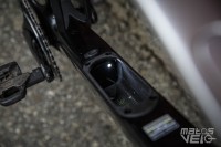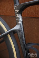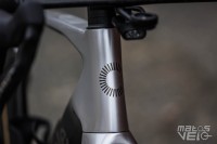 On notera le tube de selle hyper cintré, qui doit participer à la filtration du vélo.