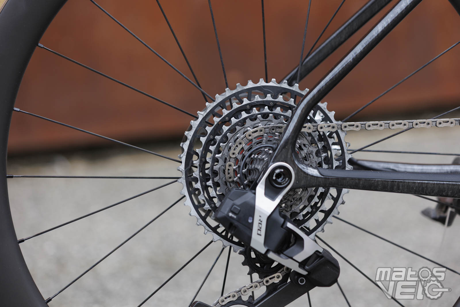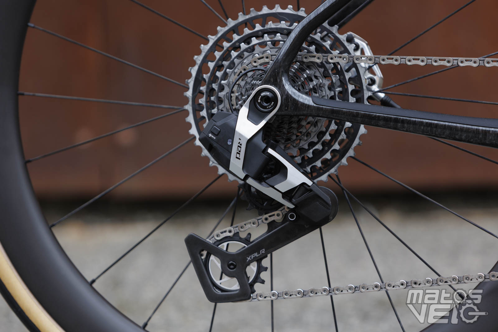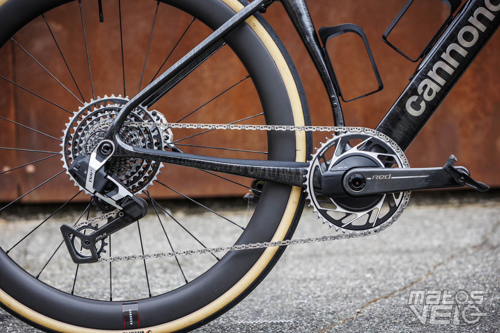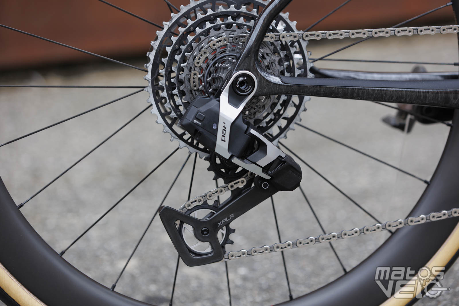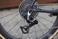 Le vélo est équipé du groupe SRAM Red AXS en version mono plateau, avec dérailleur et cassette XPLR. offrant un changement de vitesse électronique d'une précision absolue. La transmission peut être synchronisée avec le système SmartSense et propose une cassette 10-46 associée à un pédalier 44 dents. Un pédalier qui bénéficie d'un capteur de puissance Quarq intégré.