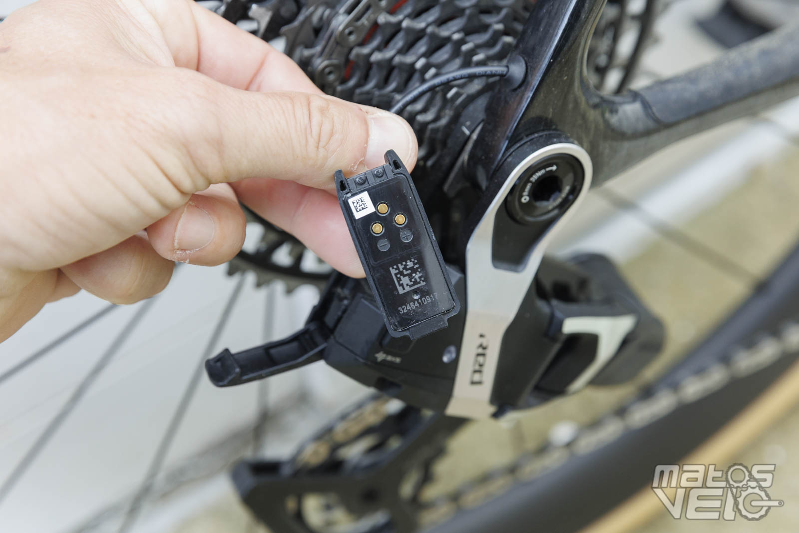 Comme indiqué, cette batterie alimente le dérailleur arrière SRAM AXS grâce à un adaptateur qui relie la batterie interne avec une connectique SRAM spécifique. De quoi largement augmenter l'autonomie du dérailleur AXS.