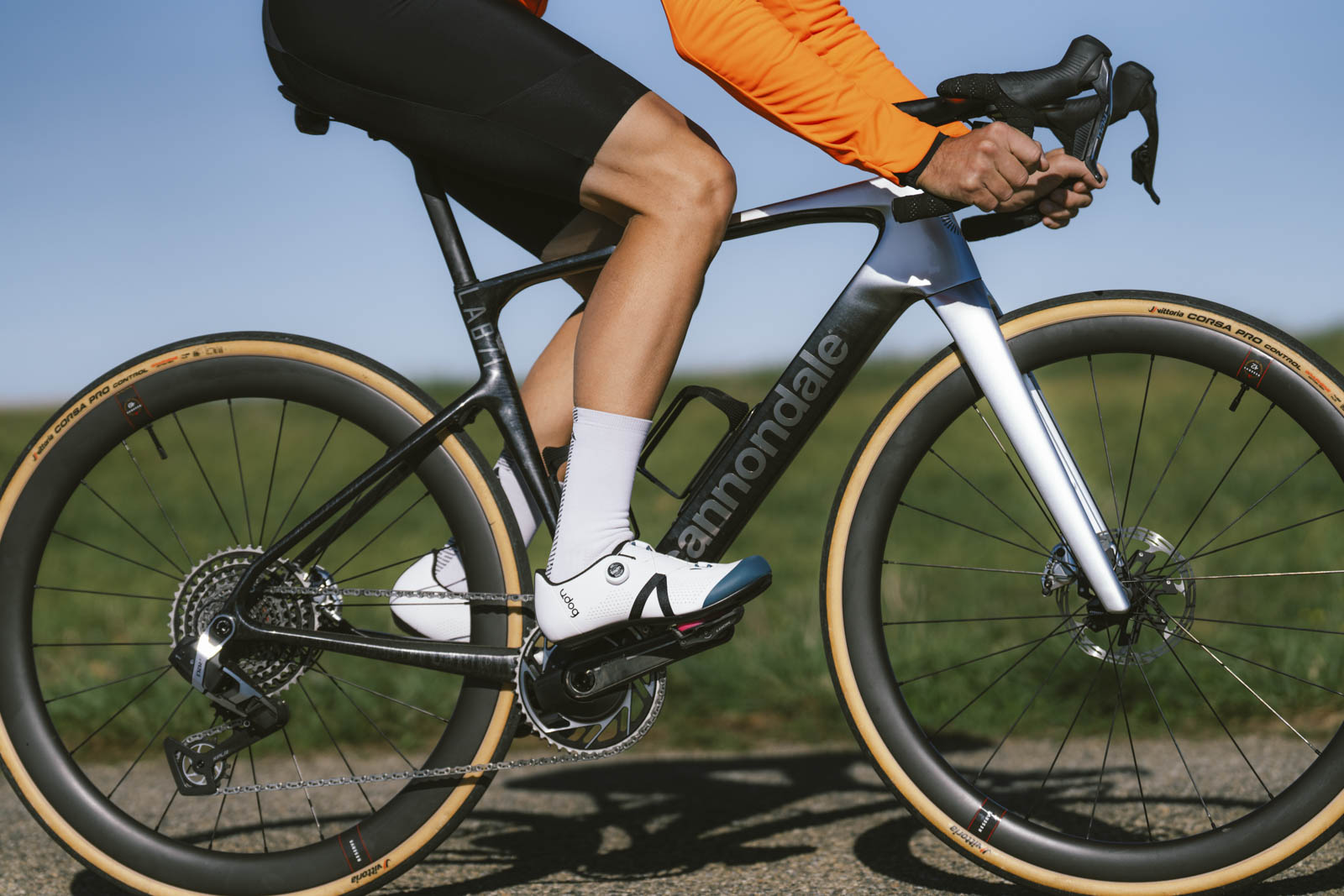 Les pneumatiques sont des Vittoria Corsa PRO Control en 700x32. Une grosse section donc, orientée pour le confort et une adhérence sur une large variété de terrains.
