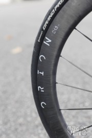 On pourrait craindre une perte de confort liée à cet accroissement de rigidité, mais la largeur interne de la jante revue à la hausse (23 mm) permet aux pneus de 28 /30 mm de parfaitement travailler et de former un joli ballon permettant une meilleure filtration des aspérités de la route. Au niveau externe, la jante mesure 27 mm au maximum, offrant ainsi un mariage quasi parfait avec des pneus de 28 mm et plus, limitant les turbulences aérodynamiques.