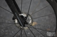 Les rayons carbone apportent clairement un plus en termes de rigidité, même si la marque a semble-t-il voulu rester dans le domaine du raisonnable, pour ne pas réserver ces roues qu'aux coureurs les plus puissants.