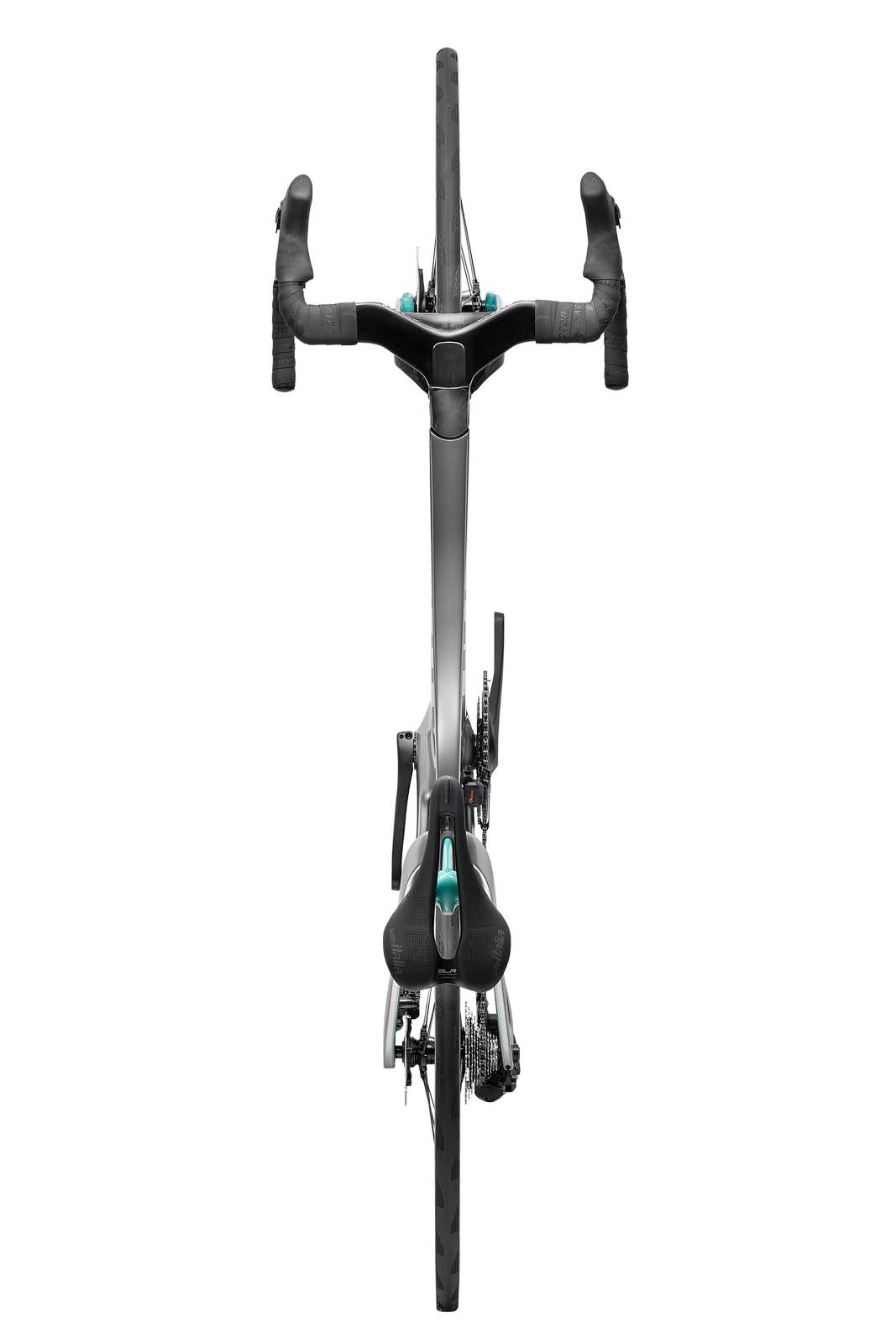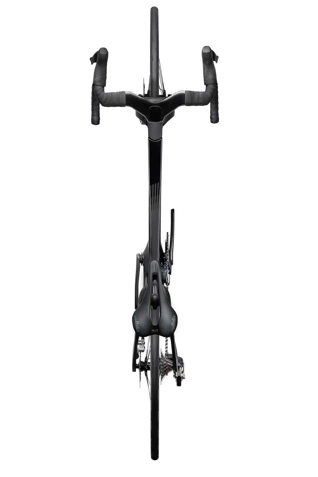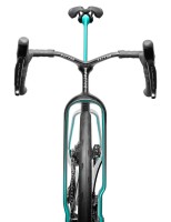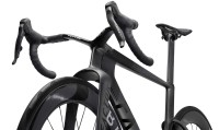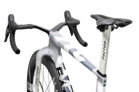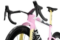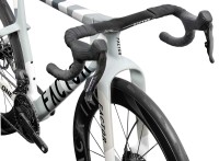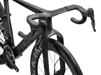 L'élément le plus distinctif du vélo est son système de fourche à baïonnette associé à un carénage avant en forme de "menton". Cette structure, rendue possible par les récentes modifications du règlement UCI, a nécessité des centaines d'itérations en CFD (simulation numérique des fluides). Elle contrôle le flux d'air dès le début du vélo, minimisant la traînée et maintenant l'avantage aérodynamique même à des angles de vent élevés, là où d'autres plateformes perdent en efficacité.
