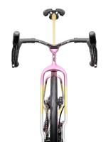 Le nouveau système de cintre intégré supprime complètement la potence traditionnelle, la remplaçant par une sélection de cinq tailles (équivalents de 110 à 150 mm), trois options de rehausse, et jusqu'à 15 mm d'entretoises ajustables. Cela offre aux coureurs 35 mm de plage de hauteur de pile sans sacrifier l'aérodynamisme ou la maniabilité.