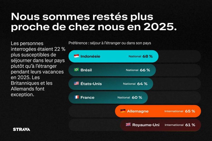 Les voyageurs sont toutefois restés plus proches de chez eux en 2025, privilégiant les destinations nationales (22 % de plus que les voyages à l'étranger).