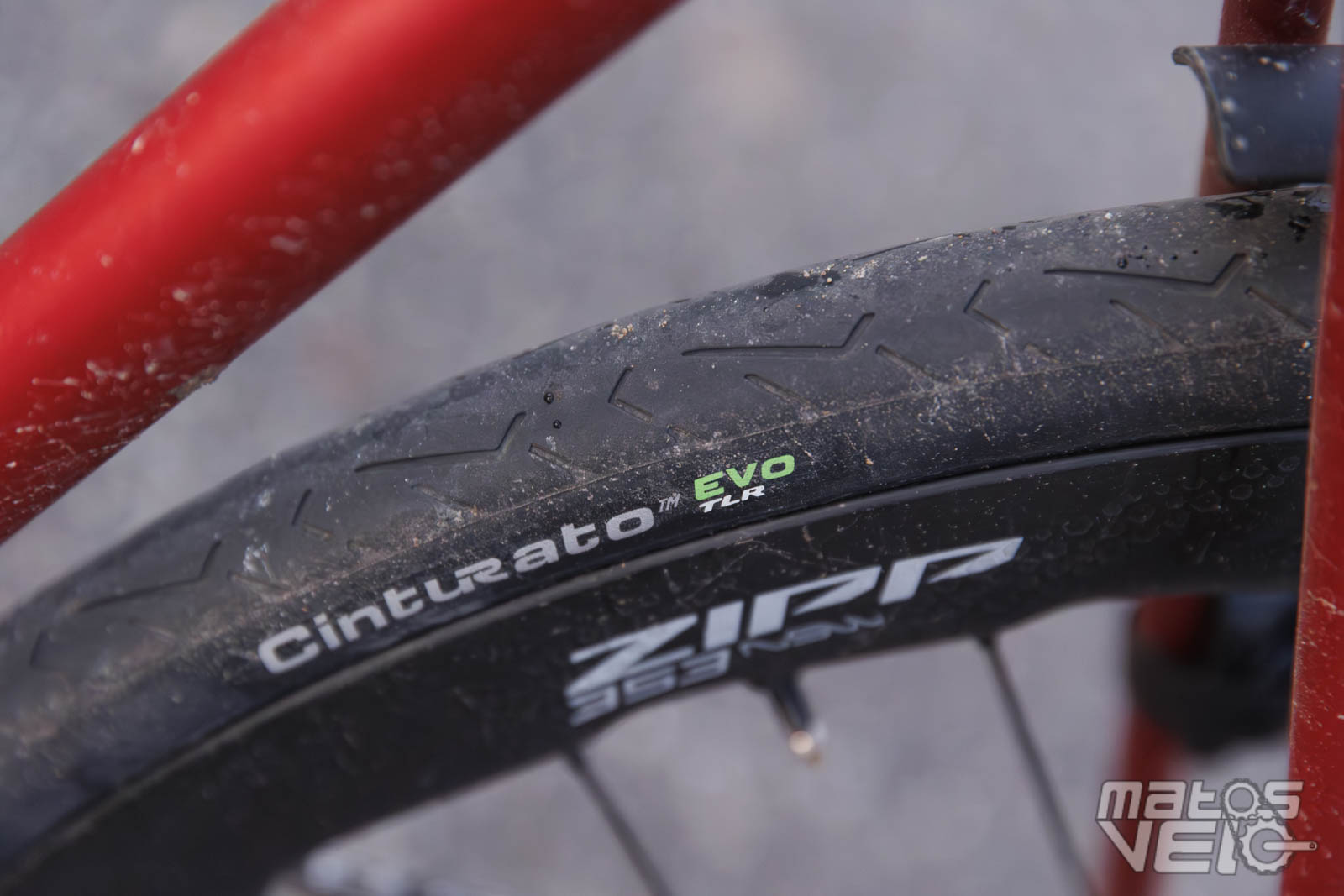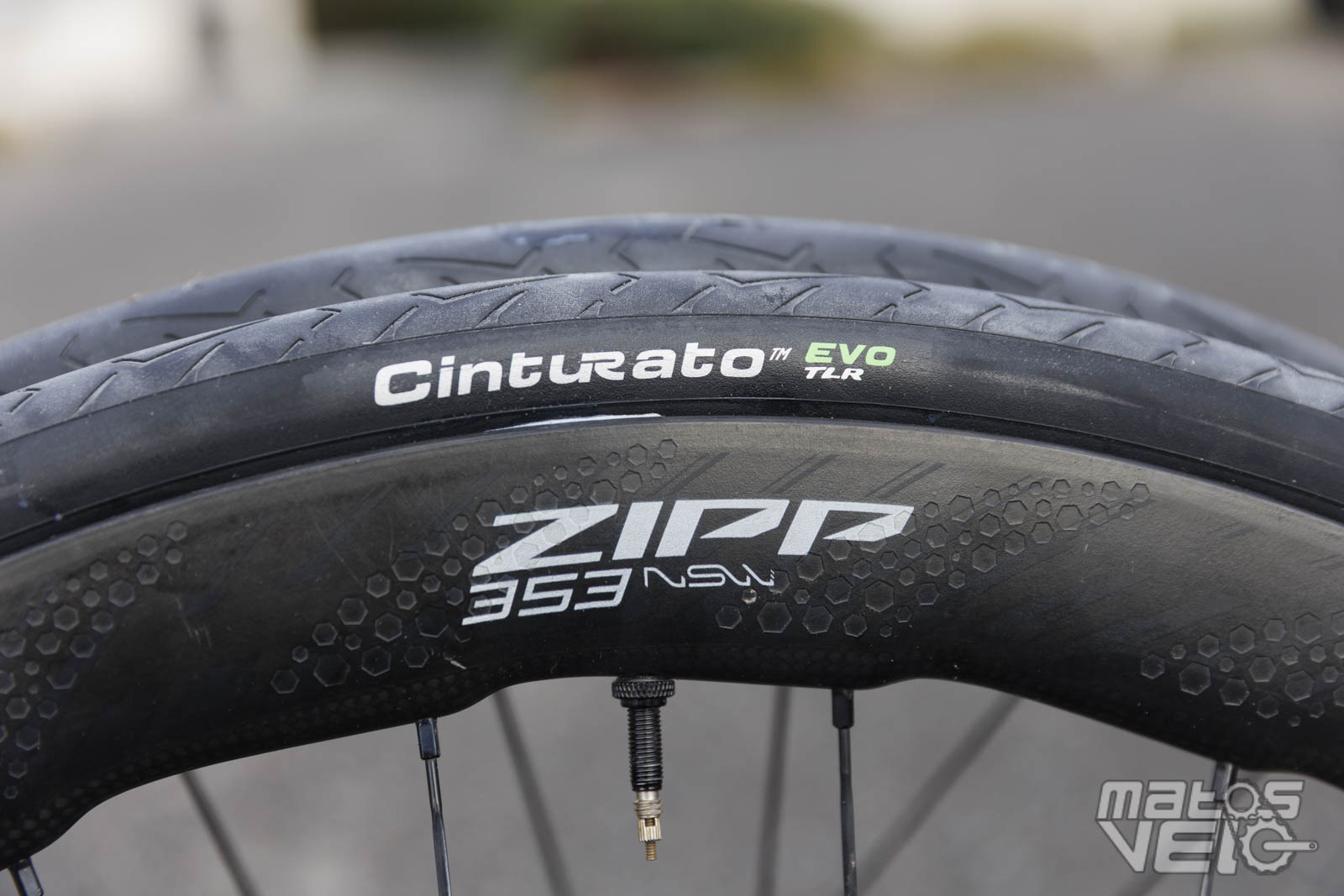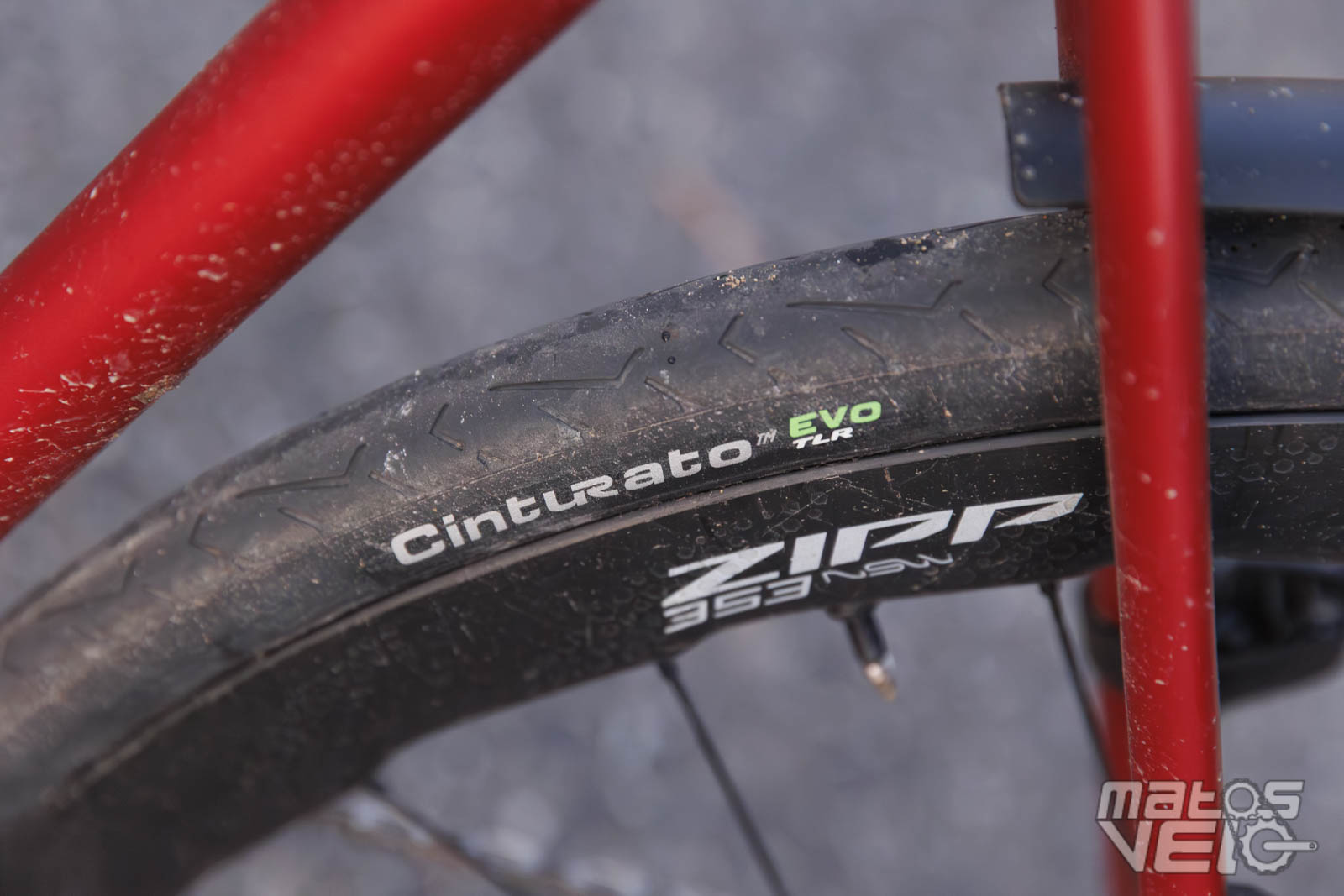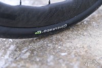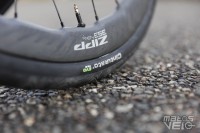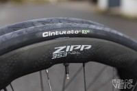 Montés sur des jantes Zipp 353 NSW de 25 mm de largeur interne, les Pirelli Cinturato EVO TLR en section 32 mm ont été testés à des pressions de 3.5 à 4 bars et mesurent 31.8 mm en réel dans ce cas.