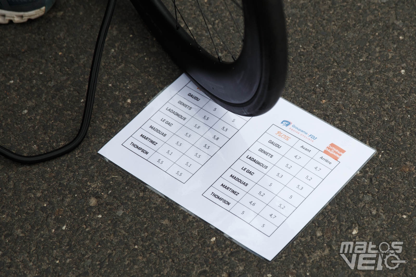 Sur la première image, les pressions Groupama FDJ à l'époque où ils roulaient encore en 25 mm. La seconde photo, les pressions pour des tubeless 28 mm et enfin, sur la dernière, les pressions utilisées sur les vélos de CLM l'an dernier au Critérium du Dauphiné.