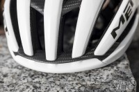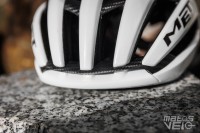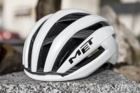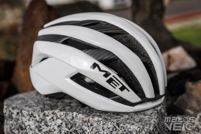 Un casque qui affiche des lignes élancées caractéristiques, avec une large prise d'air frontale et une arête prononcée qui lui confèrent un profil aérodynamique affirmé. Le casque conserve son design reconnaissable tout en bénéficiant d'évolutions internes significatives, notamment l'intégration d'une cage carbone 3K Airframe qui remplace partiellement la mousse EPS traditionnelle. MET annonce une amélioration de 16 % du flux d'air et une progression de 40 % des performances en matière de protection par rapport à la génération précédente, validée par un score de 5 étoiles au protocole Virginia Tech.