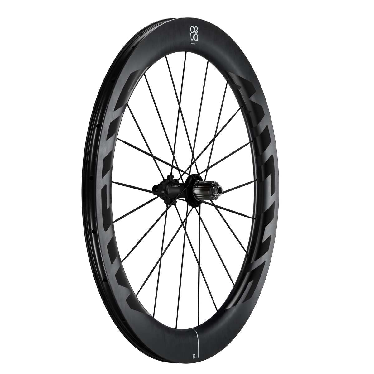 Les jantes DEVA RD utilisent une structure carbone T700/T800/T1000 avec finition UD mate et une largeur interne de 23 mm compatible tubeless.