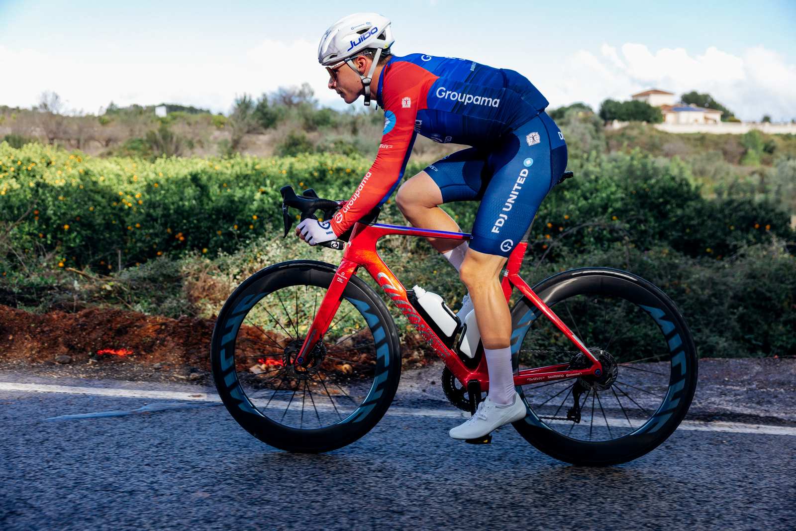 La collaboration avec l'équipe Groupama-FDJ a joué un rôle décisif dans le développement des DEVA RD. Pour la première fois, Miche a bénéficié de l'expérience directe d'une structure World Tour tout au long du processus, depuis les retours sur les premiers prototypes jusqu'aux analyses aérodynamiques avancées. Cette validation terrain a permis d'atteindre un niveau de maturité et de performance inédit pour une roue Miche.