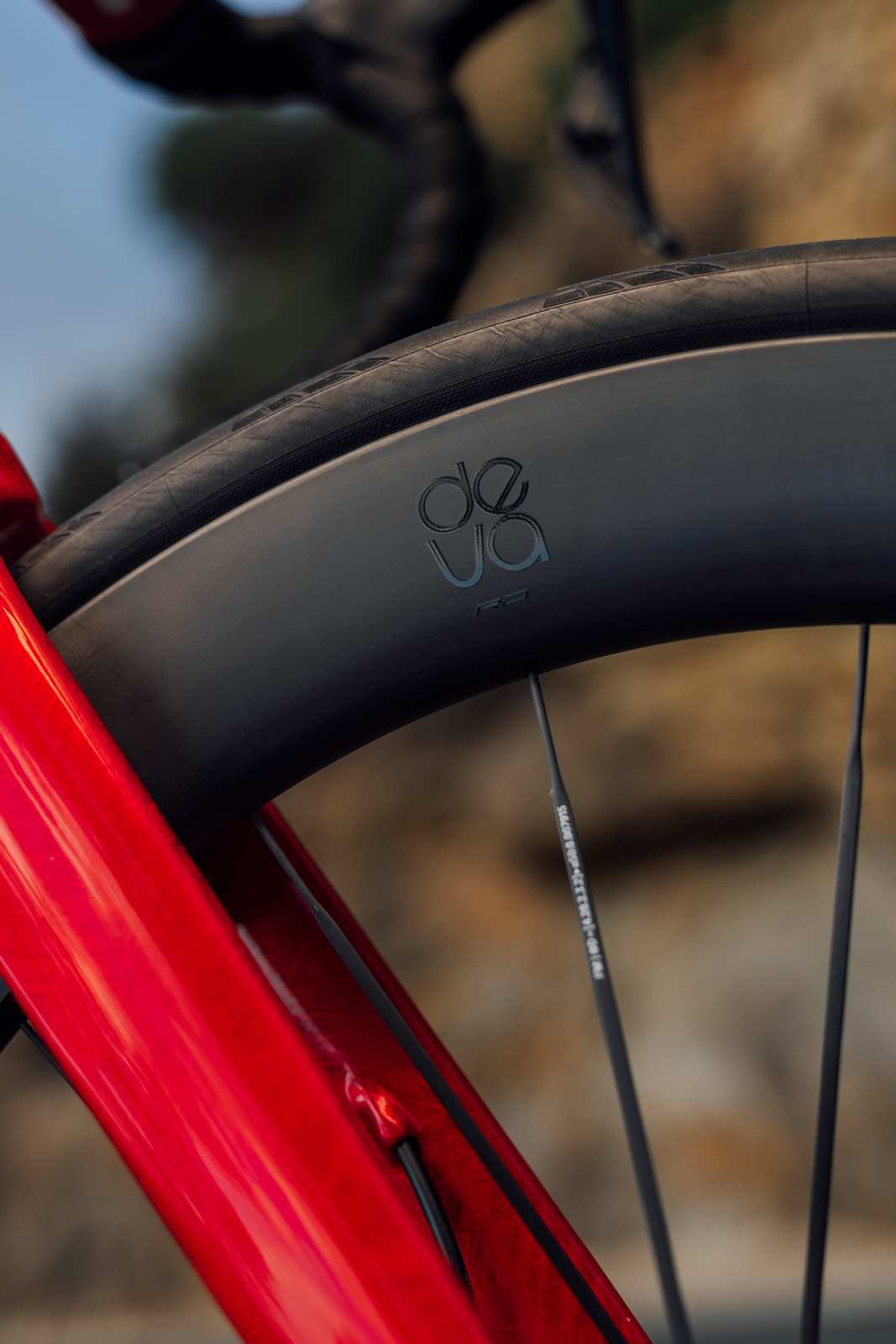 L'innovation majeure des DEVA RD réside dans l'adoption de rayons carbone à géométrie aérodynamique, avec une section de 4×1 mm. Leur intégration avec des écrous de rayon cachés directement dans la jante élimine les éléments exposés et réduit les turbulences.
