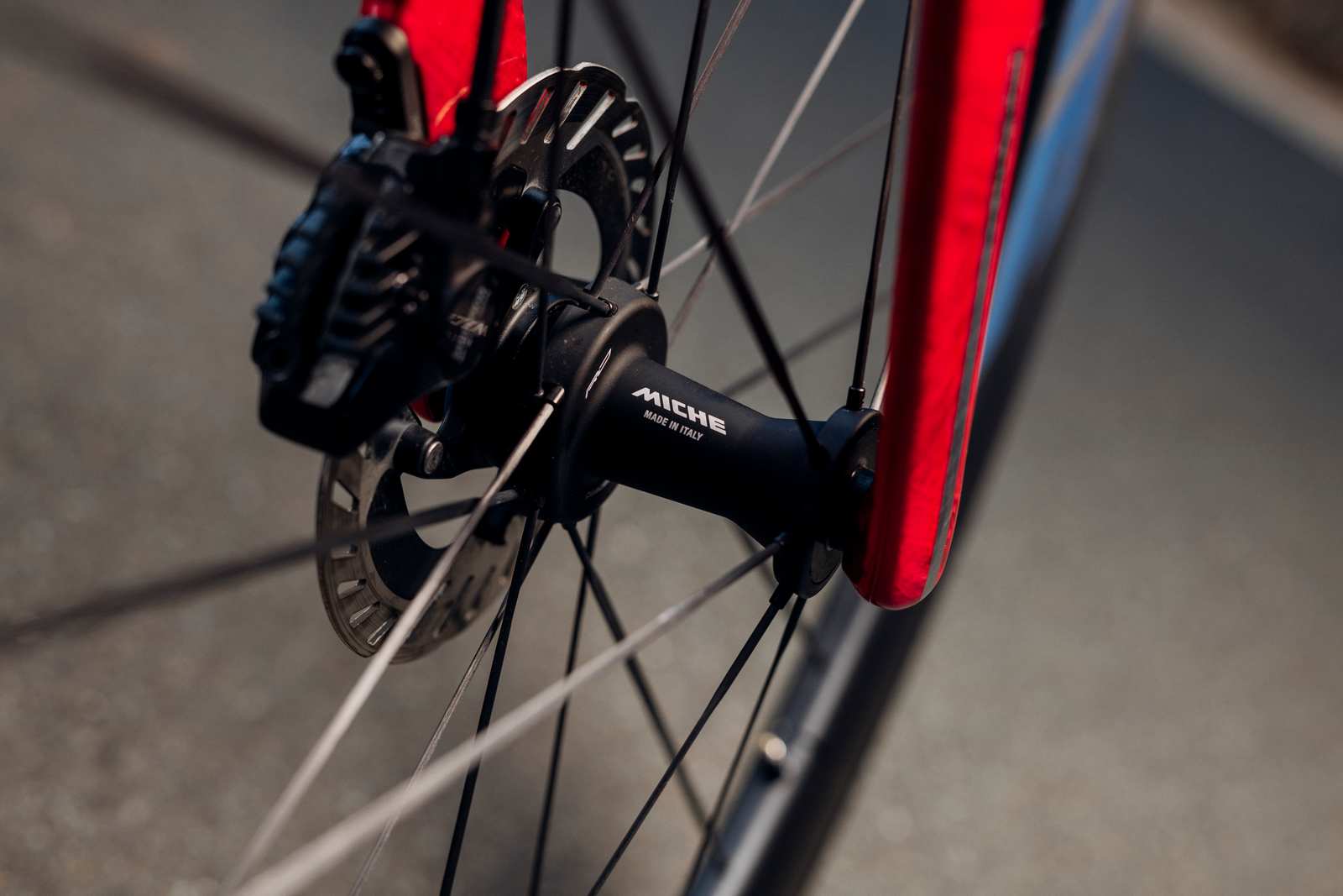 La technologie Aeroblade de Miche, imprimée en 3D avec une résine chargée en carbone, stabilise l'alignement des rayons et protège le système des contaminants, tandis qu'un réglage micrométrique permet d'ajuster précisément la précharge.
