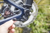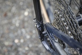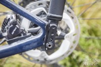 Sur mon vélo gravel de test (Specialized Diverge), j'ai opté pour le montage sur l'axe traversant avec attaches rapides. Les adaptateurs de cadre se vissent dans les œillets de la patte arrière, puis les attaches rapides du porte-bagages s'accrochent à ces adaptateurs avec un clic satisfaisant. Le plus long, c'est de trouver le bon nombre de rondelles à mettre sur l'axe pour obtenir le bon écartement.