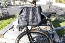 La fixation du sac et son positionnement bas sur le porte-bagages lui confèrent une stabilité remarquable. Même rempli à ras bord et chargé de plus de 6 kg (un pack de lait), il ne déséquilibre jamais le vélo.