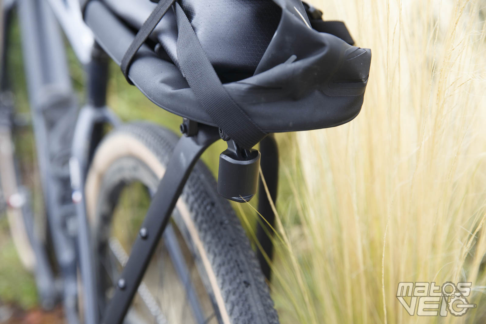 J'ai eu en option le support pour éclairage et c'est vrai qu'il est pratique, car une fois le sac rempli, un éclairage fixé sur la tige de selle n'est plus d'aucune utilité.