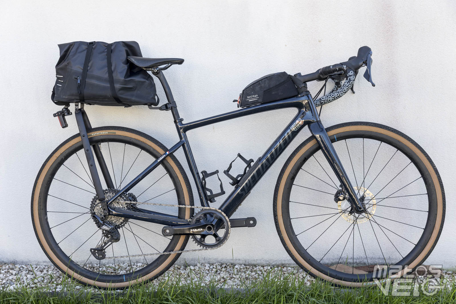 J'ai pu tester le système en configuration complète sur plusieurs sorties gravel de 60 à 80 km incluant chemins forestiers, singles techniques et secteurs cassants. La charge totale variait entre 8 et 10 kg selon les sorties.