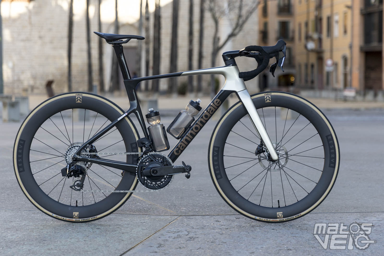 Pour cet essai, la presse internationale avait à sa disposition un SuperSix EVO 1 affichant 7.3 kg pour un tarif de 8499 € équipé avec la transmission SRAM Force AXS.