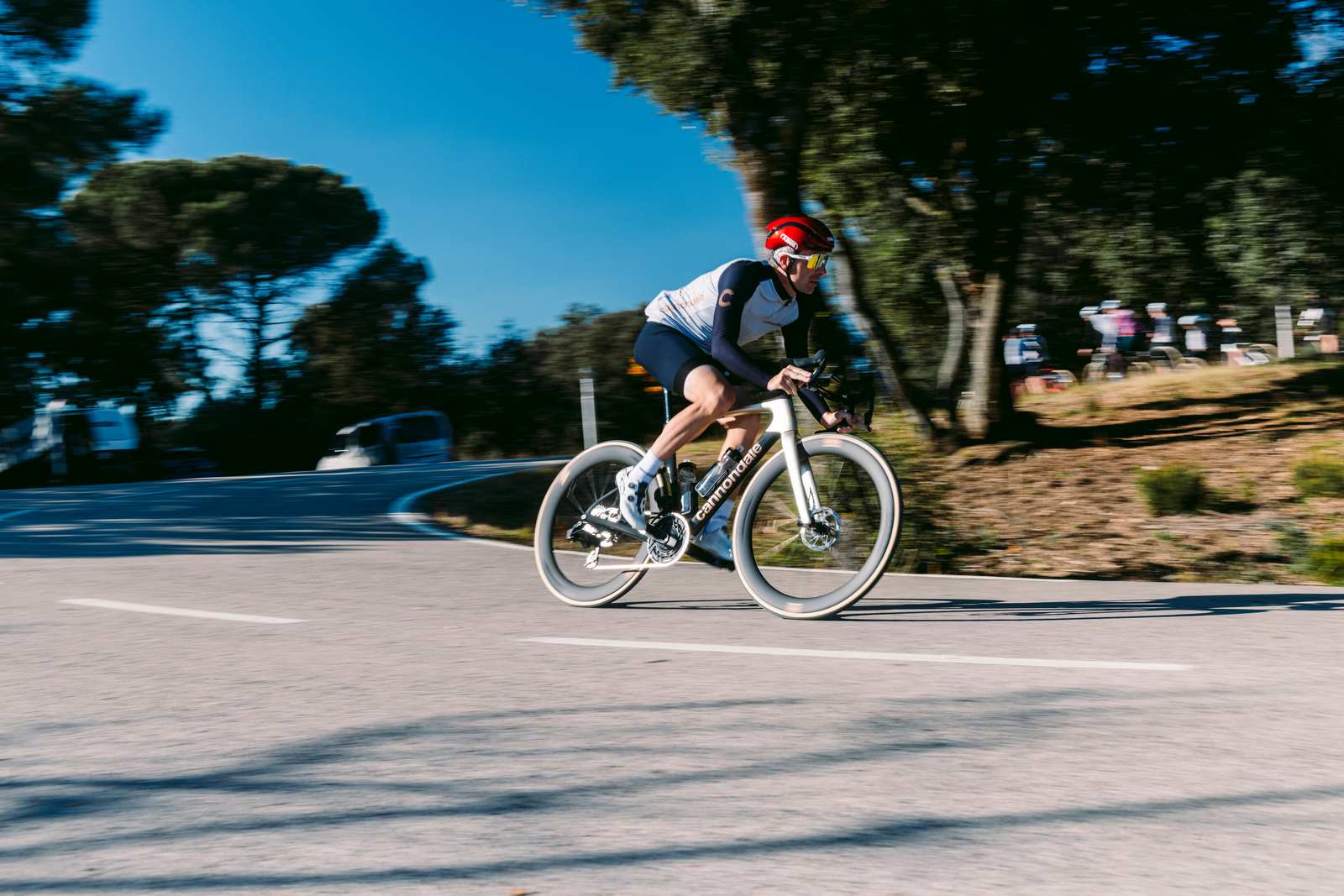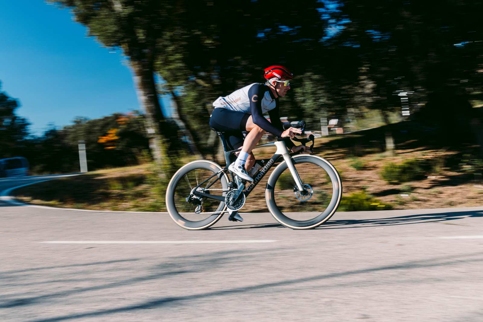 Une vraie partie de plaisir avec ce SuperSix EVO Gen5 entre les jambes. Sa stabilité dans les portions très rapides ainsi que son excellente filtration permettent de totalement se relâcher et ne se concentrer que sur son pilotage pour parfaitement placer le vélo au millimètre.
