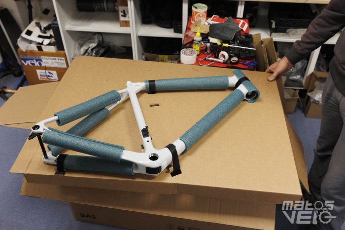 En revanche, le mécanicien présent ce jour salue le bon emballage des cadres. Contrairement à plusieurs marques de cadres précédentes, ici, tout est bien emballé, chaque cadre protégé par de la mousse pour arriver en parfait état.