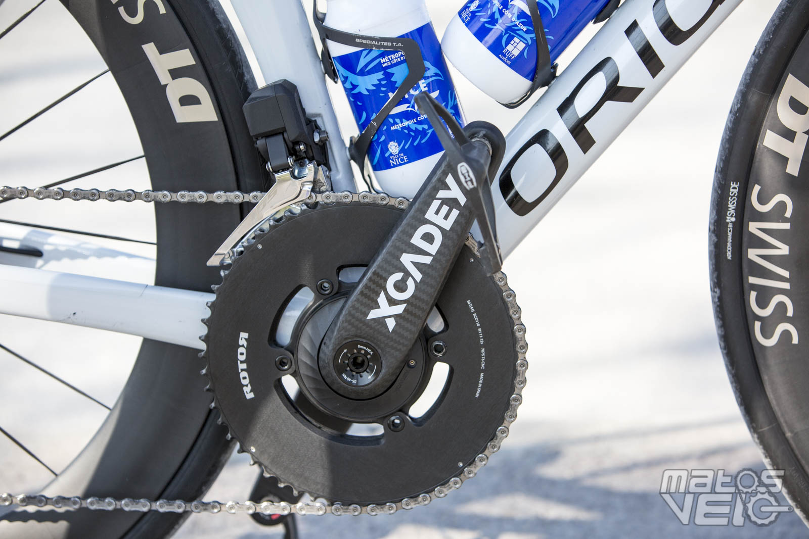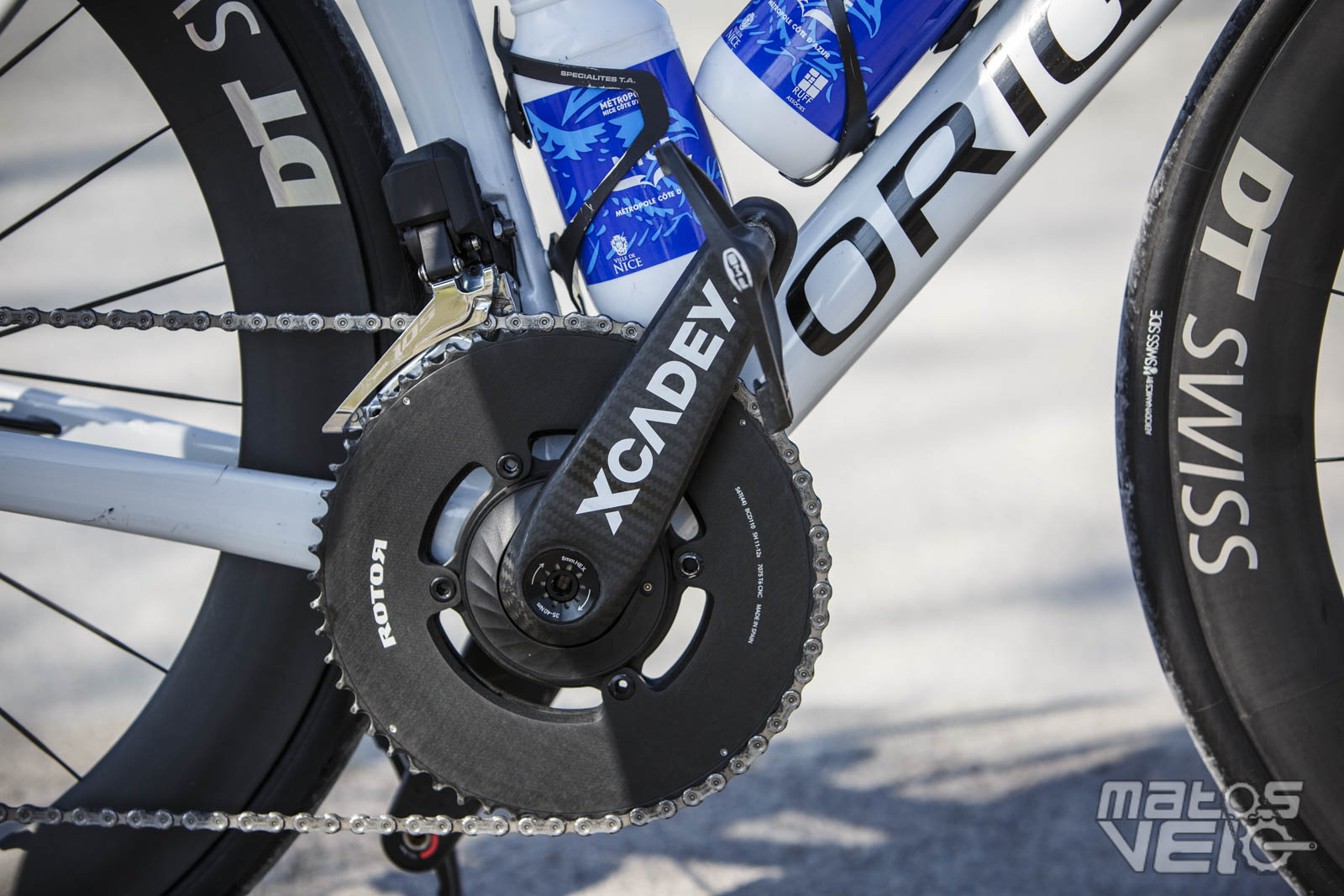 Point de groupe Shimano Dura-Ace Di2 donc, les vélos sont montés avec un mix d'Ultegra et 105 Di2. Quant aux pédaliers, ce sont majoritairement des XCADEY montés avec des plateaux Rotor, le tout étant complété par des pédales Ekoï PW8.