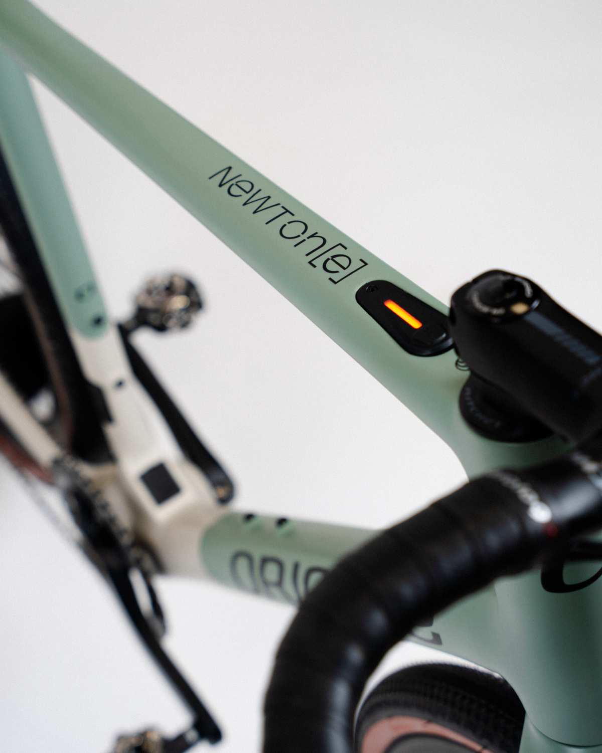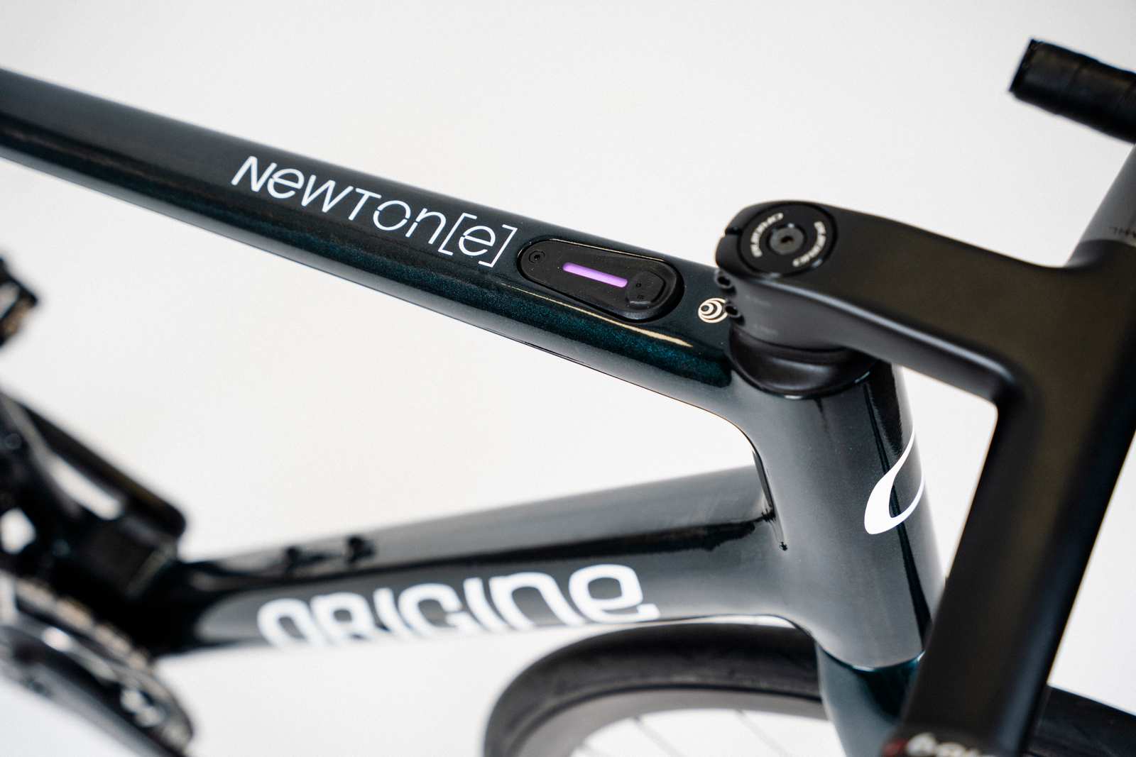 Le Newton[e] n'est pas un vélo de route classique auquel on aurait greffé un moteur. Origine a conçu ce cadre carbone depuis le début pour répondre aux contraintes spécifiques d'un couple moteur, tout en intégrant l'ADN sportif de la marque.