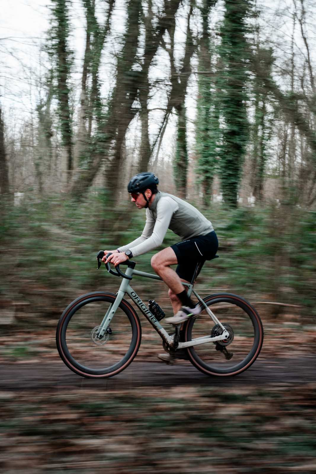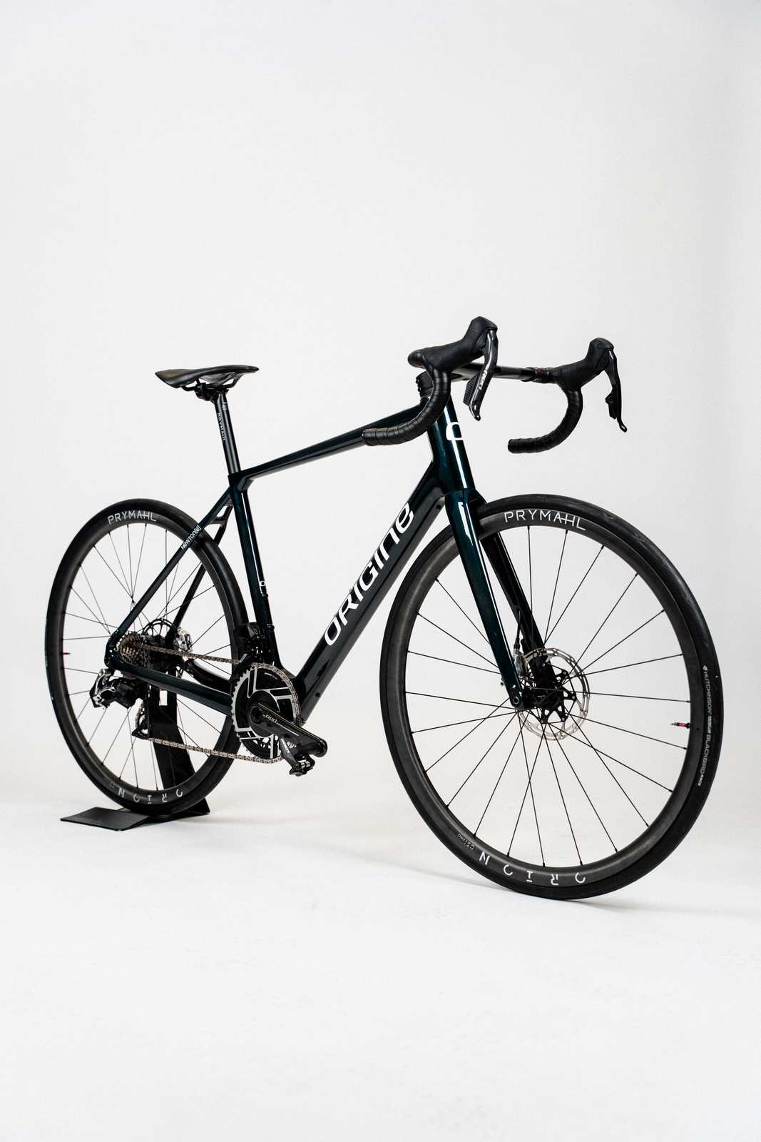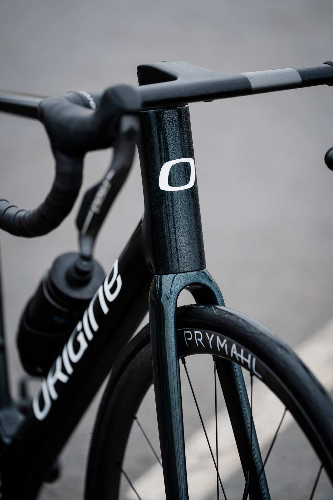 Fidèle à sa philosophie d'optimisation globale, Origine équipe le Newton[e] de nouvelles roues Prymahl C31 Pro : profil carbone de 31 mm, largeur interne de 23 mm, et seulement 1350 g la paire de jantes. Sur les profils montagneux, le gain de poids rotatif se ressent directement dans la vivacité du comportement.