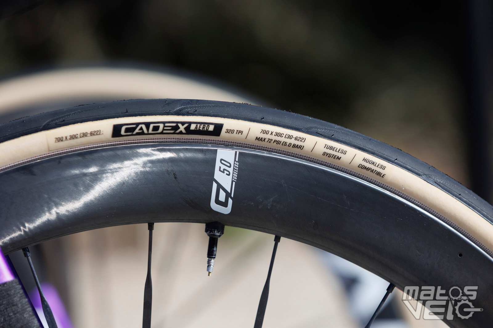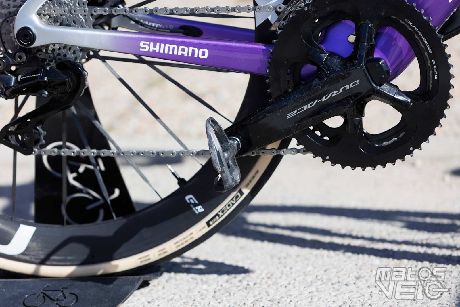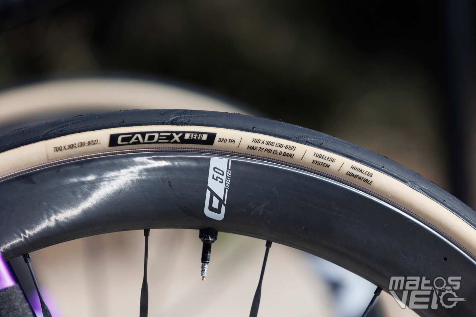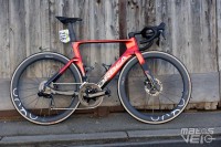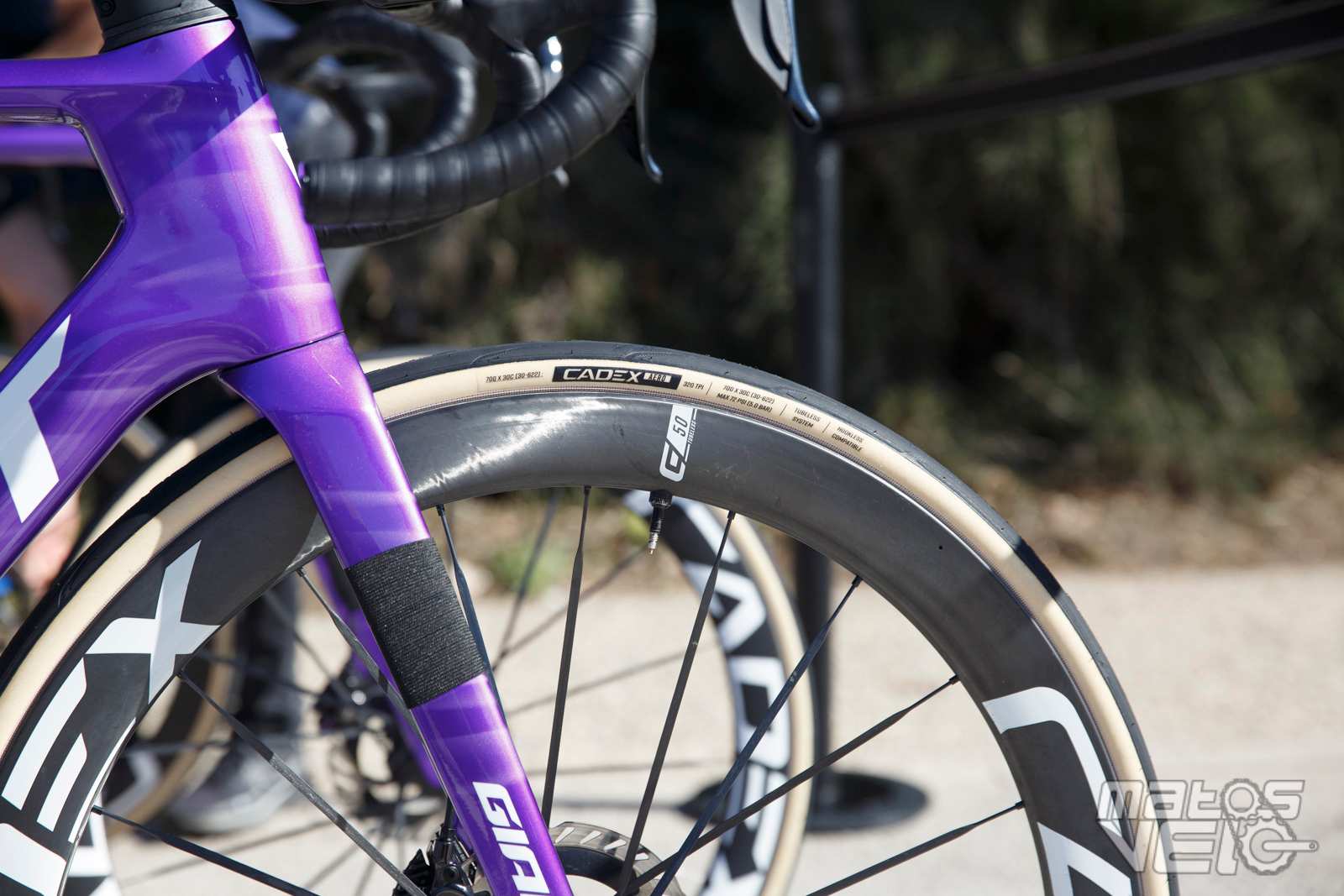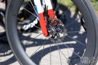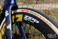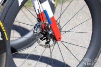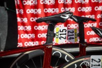 Ici équipé des roues Cadex Ultra 50 et de pneus Cadex Aero mais dans leur ancienne version en 320 TPI, les nouveaux étant en 240 TPI.