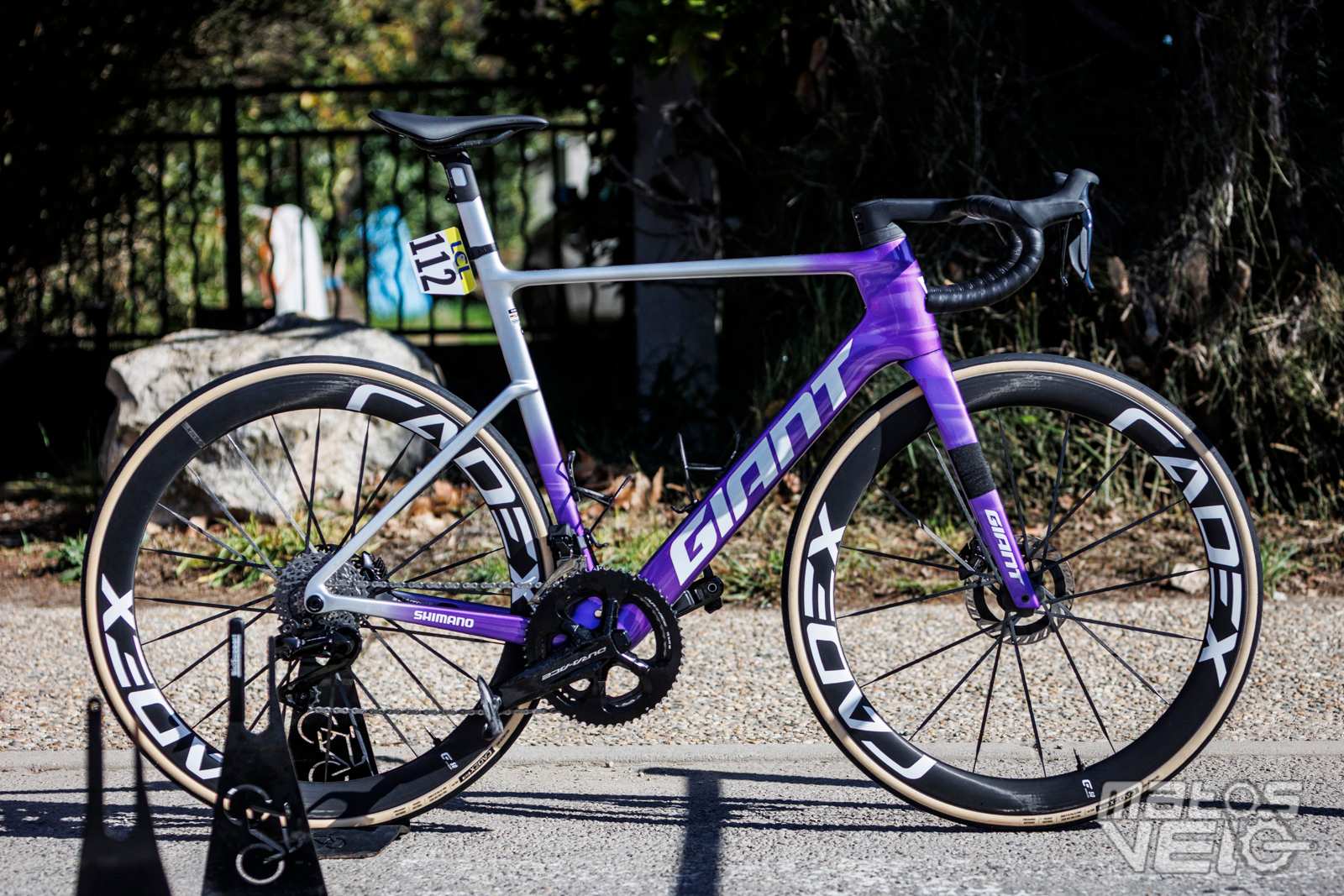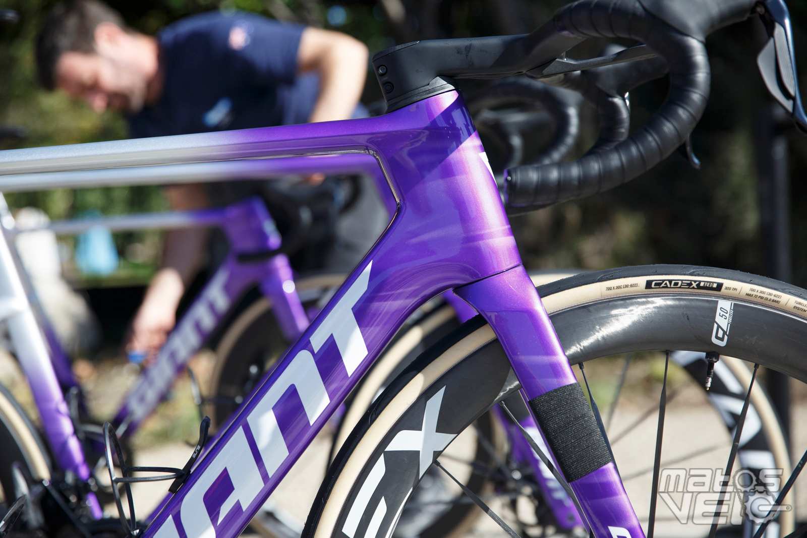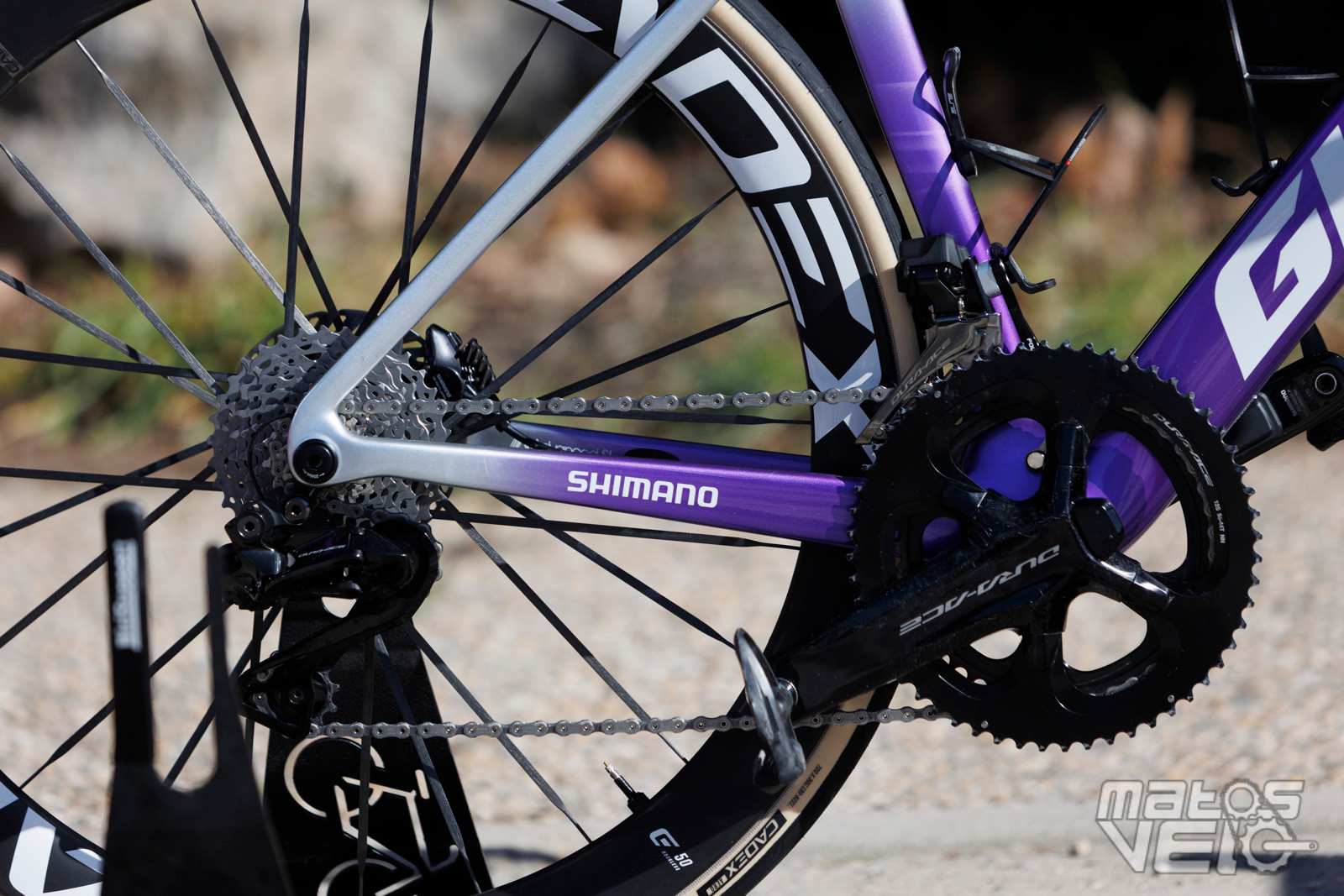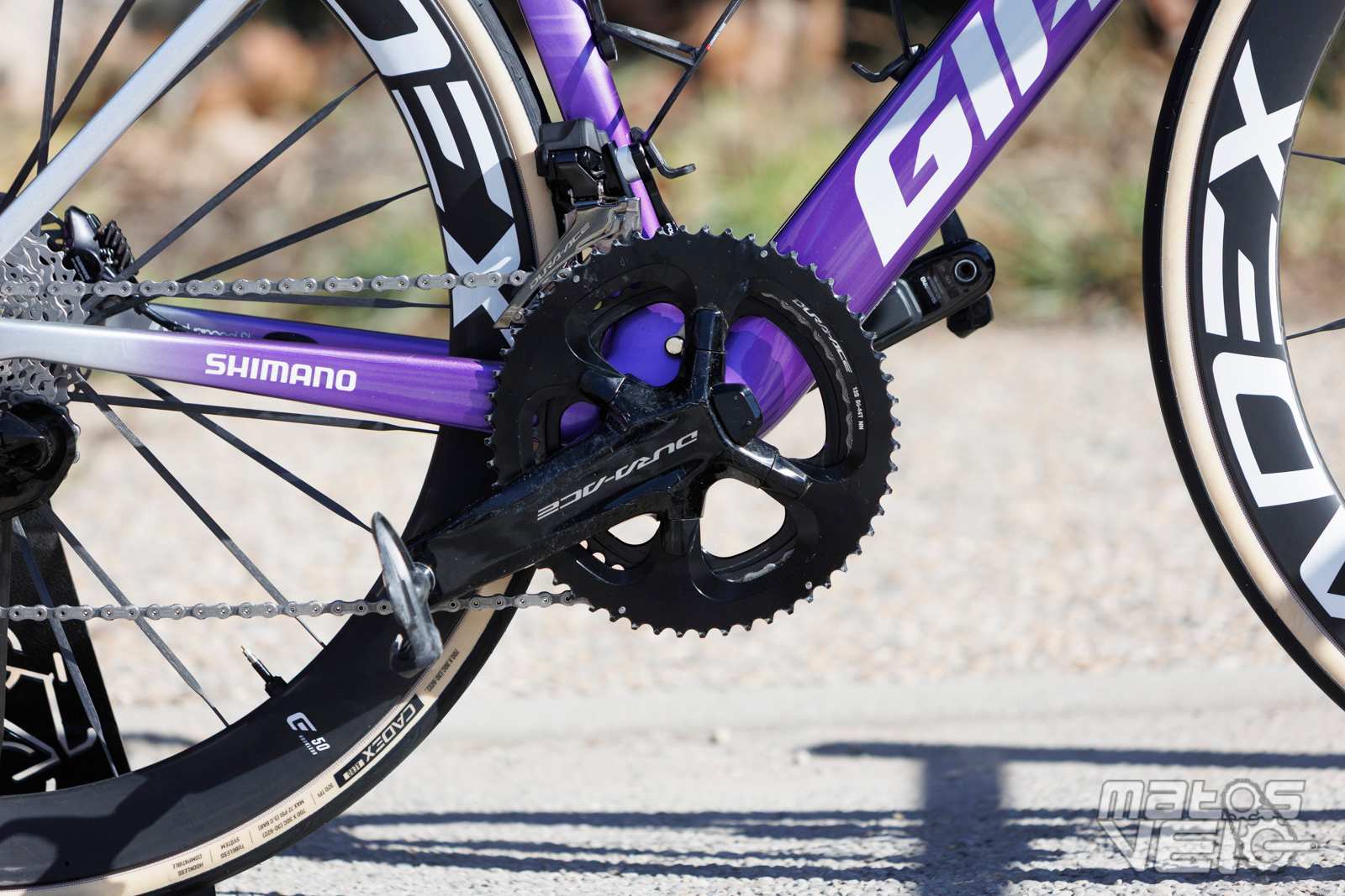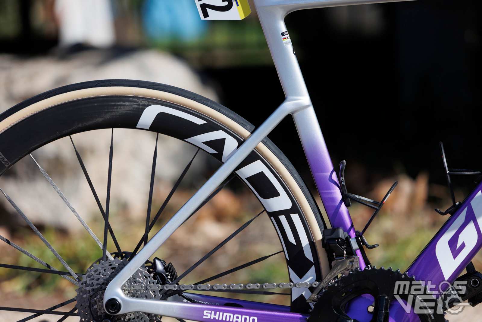 Ici équipé des roues Cadex Ultra 50 et de pneus Cadex Aero mais dans leur ancienne version en 320 TPI, les nouveaux étant en 240 TPI.