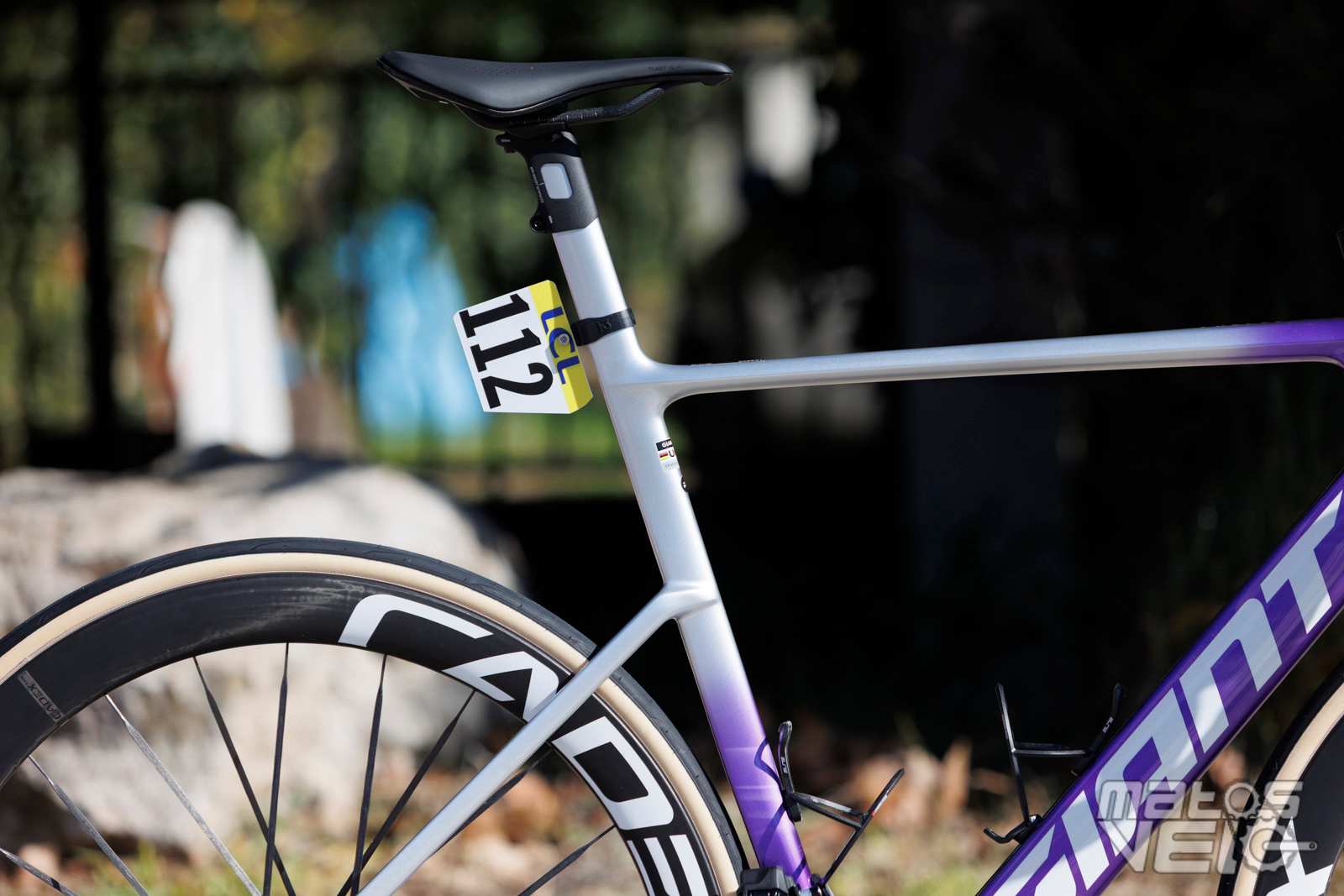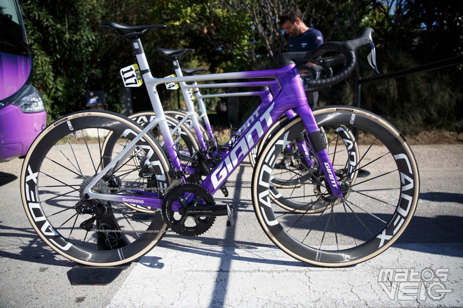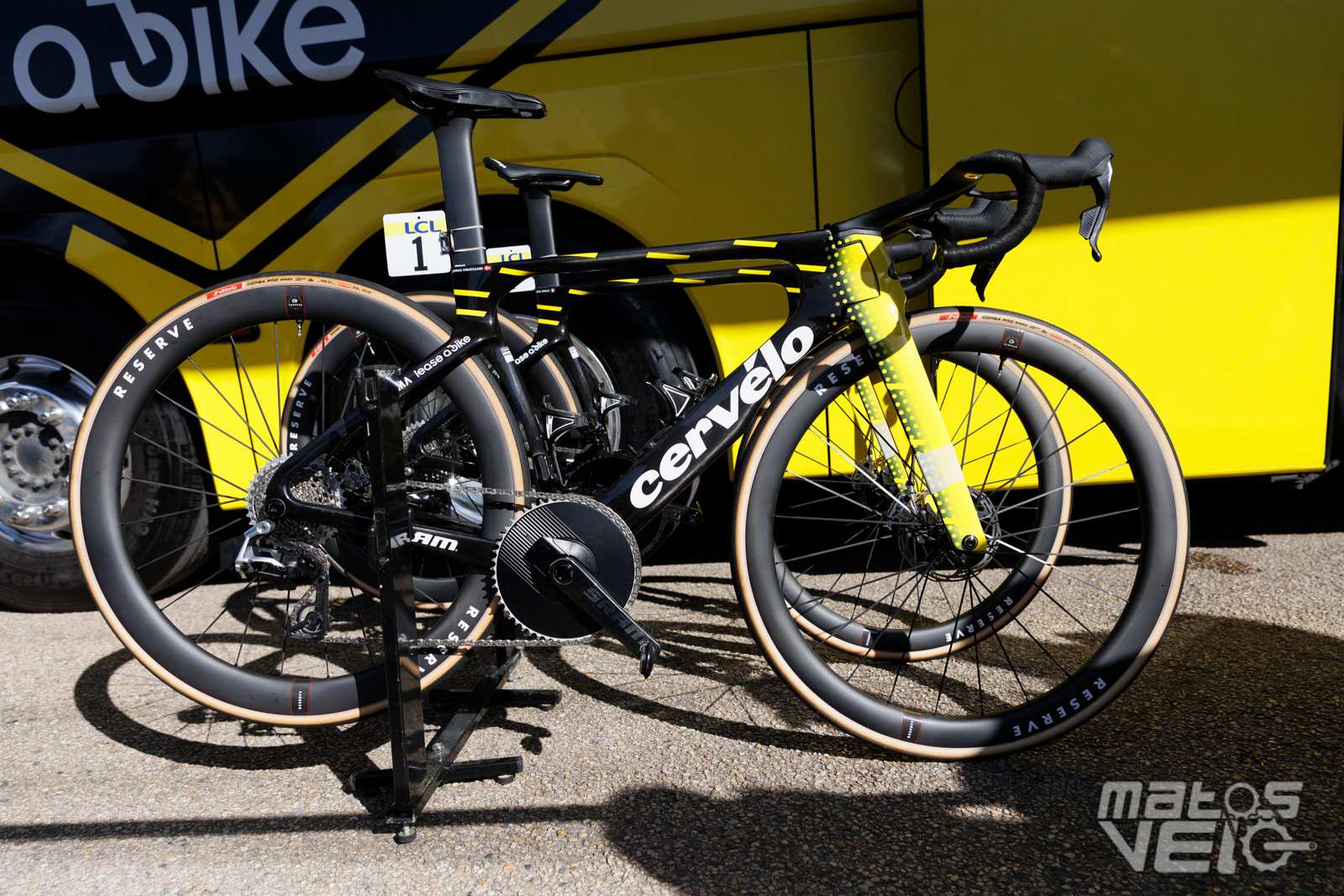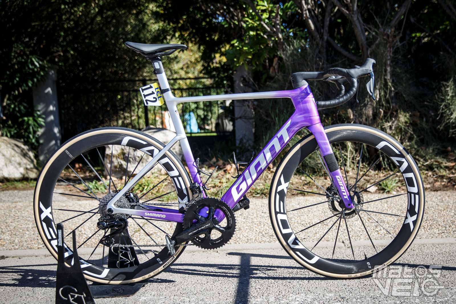 Ici équipé des roues Cadex Ultra 50 et de pneus Cadex Aero mais dans leur ancienne version en 320 TPI, les nouveaux étant en 240 TPI.