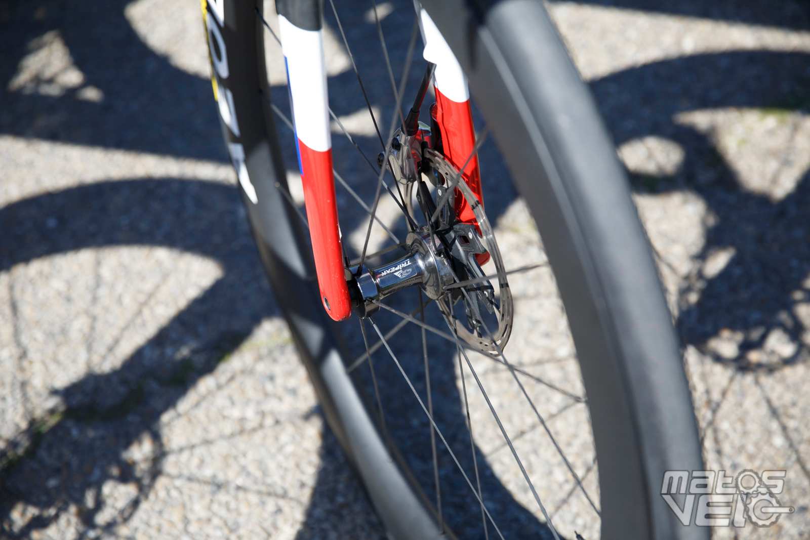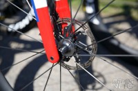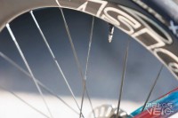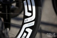 Les rayons sont en carbone, comme c'est le cas de beaucoup de nouvelles roues, avec de tous nouveaux moyeux équipés de roulements céramique Tripeak.
