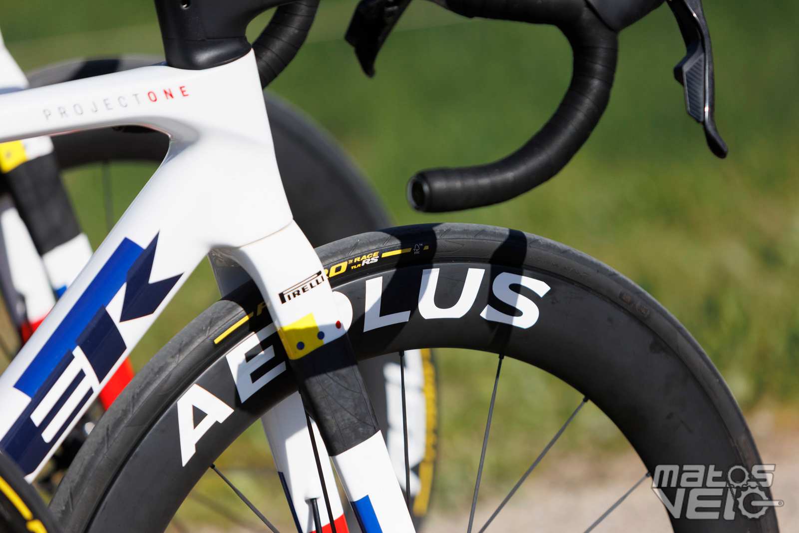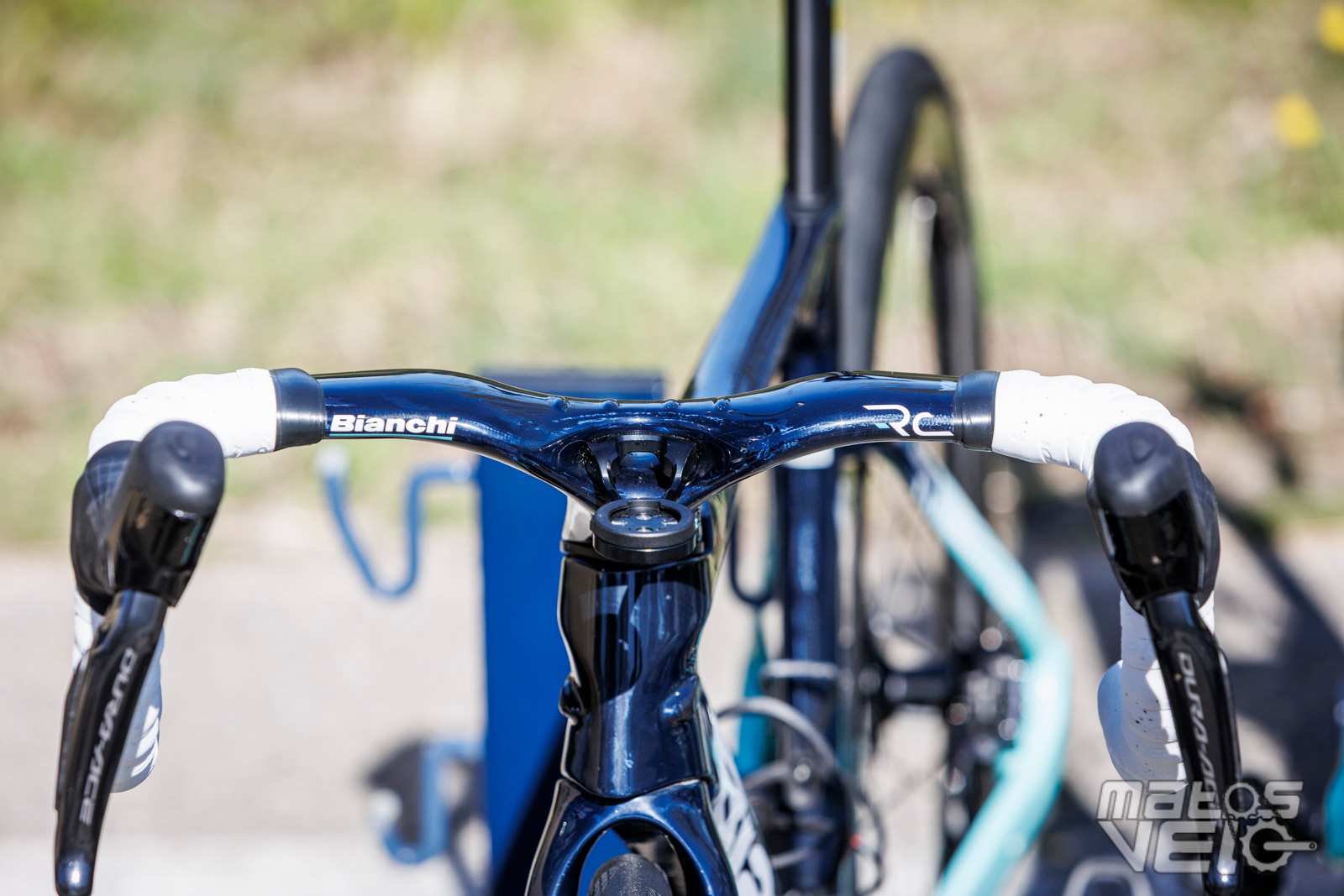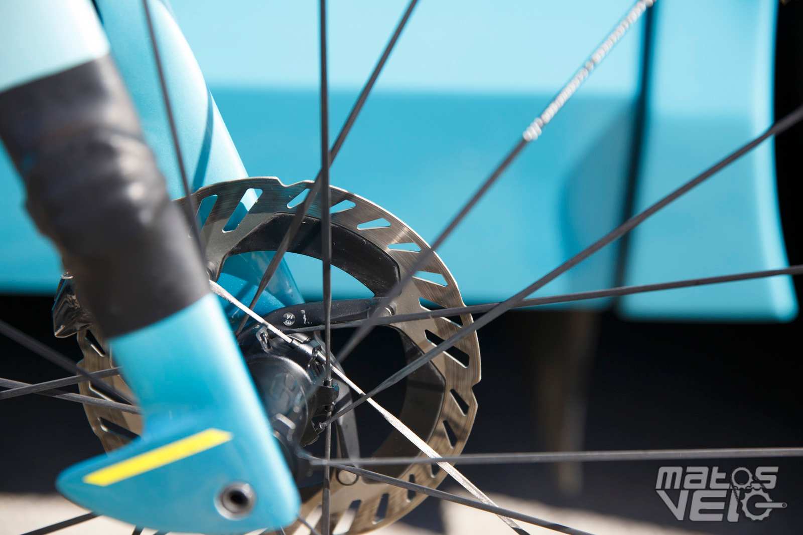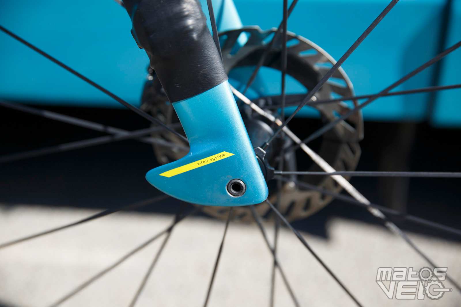 Une jolie pièce de carbone, au reflets bleutés au soleil. Un concept qui reprend ce que Cervélo avait inauguré avec son S5 et qui fut ensuite copié chez Colnago pour le Y1RS.