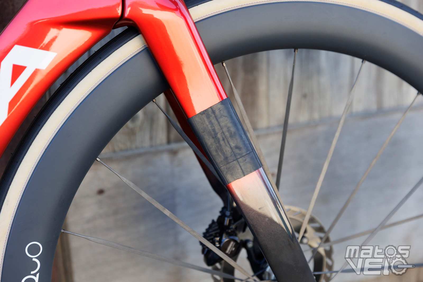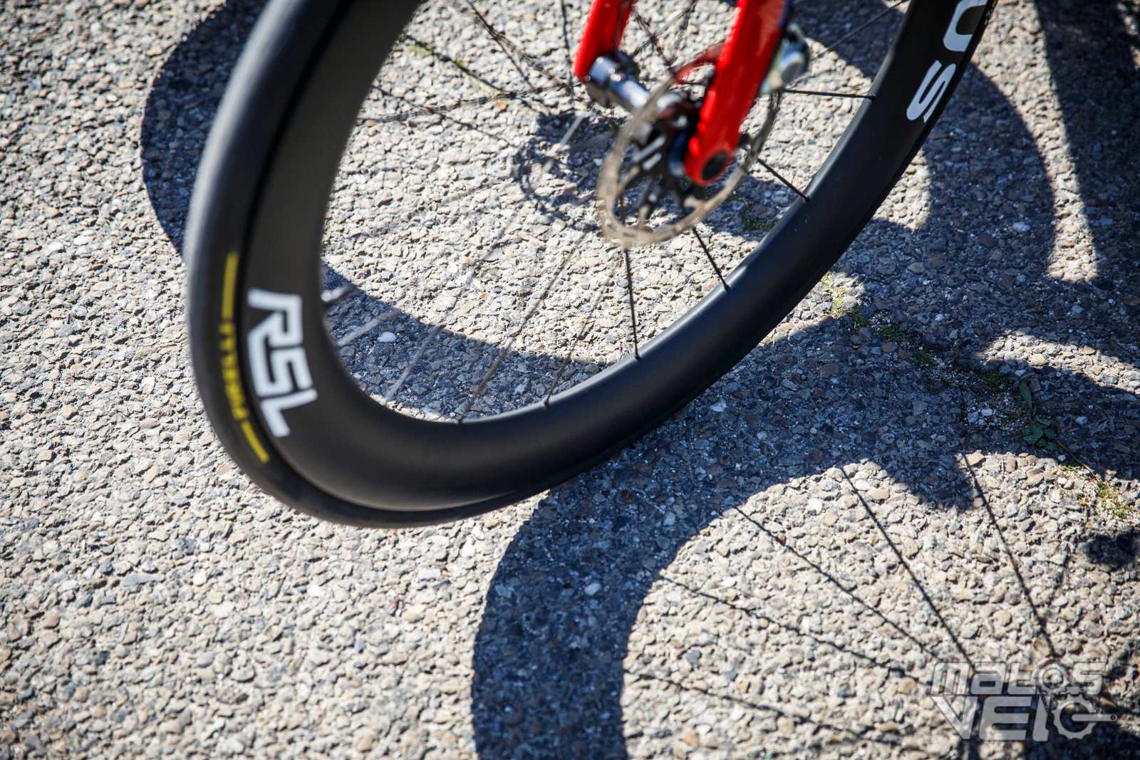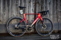 Vraiment fan du coloris de ce vélo, un rouge profond dégradé sur du noir. Equipé de nouvelles roues Oquo RP50LTD avec rayons carbone.