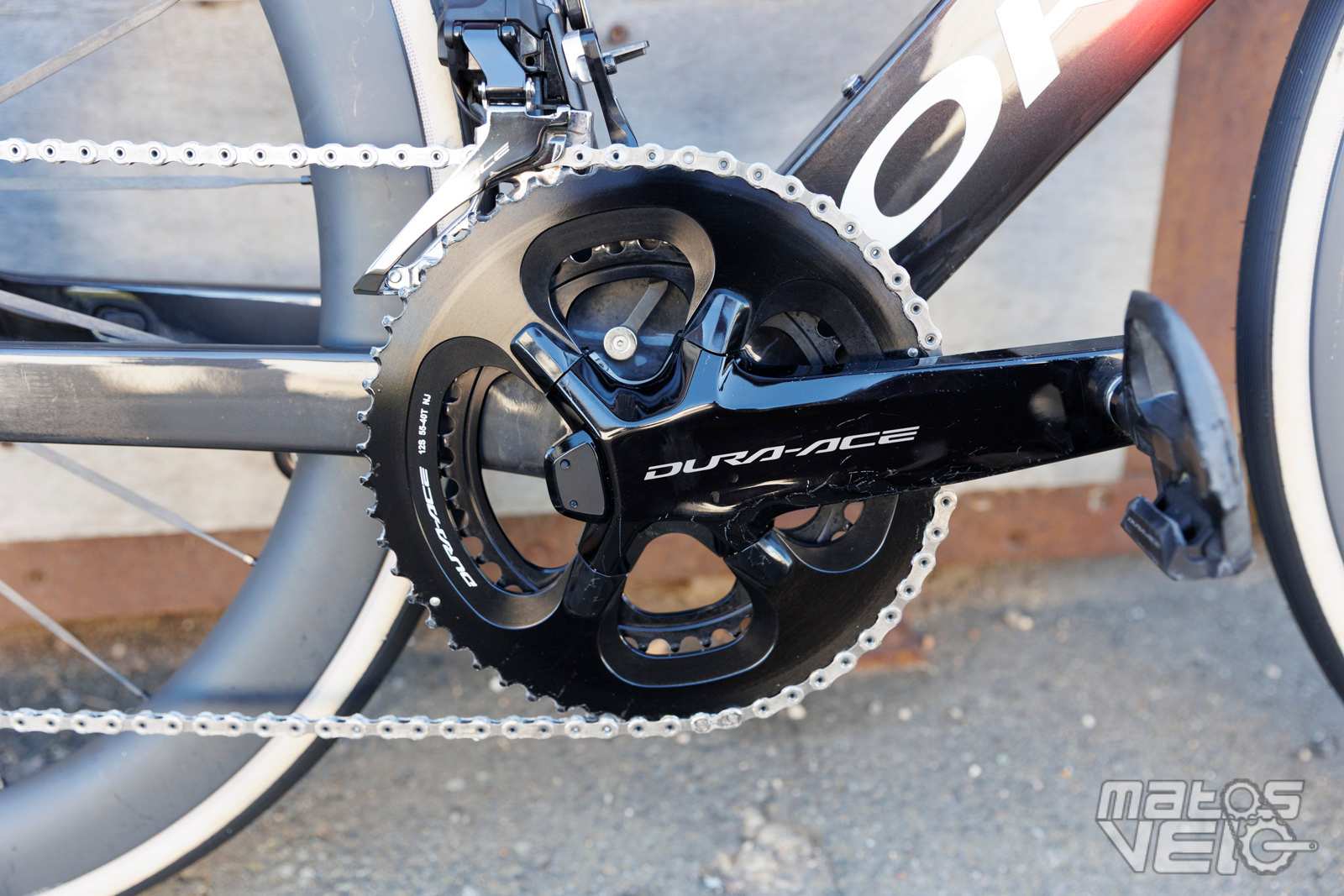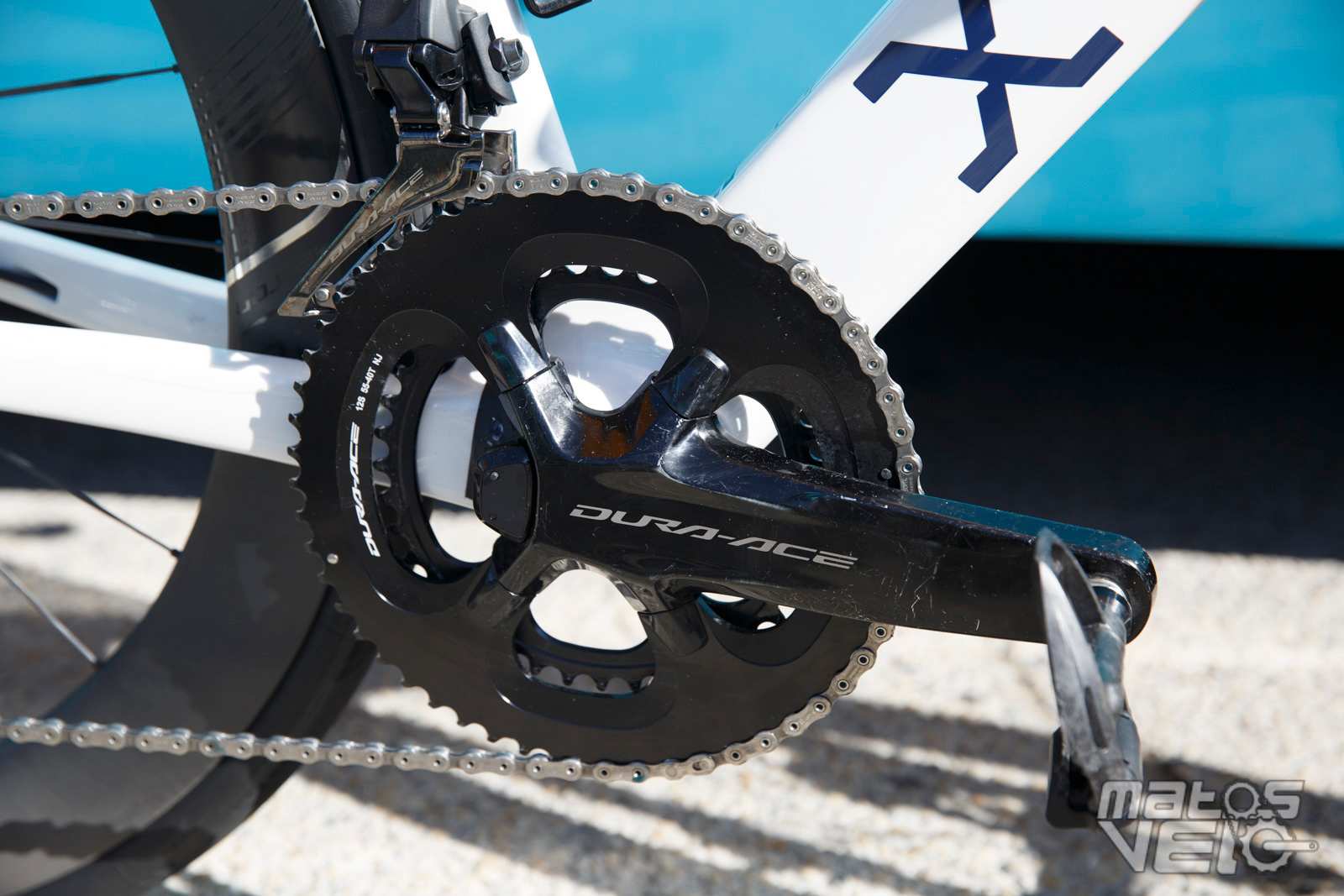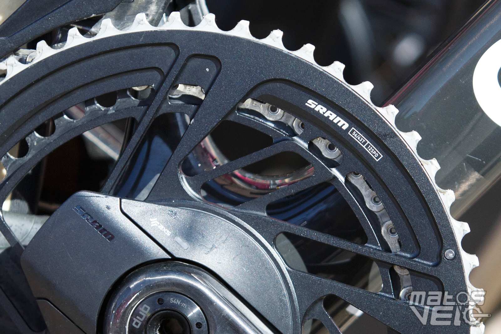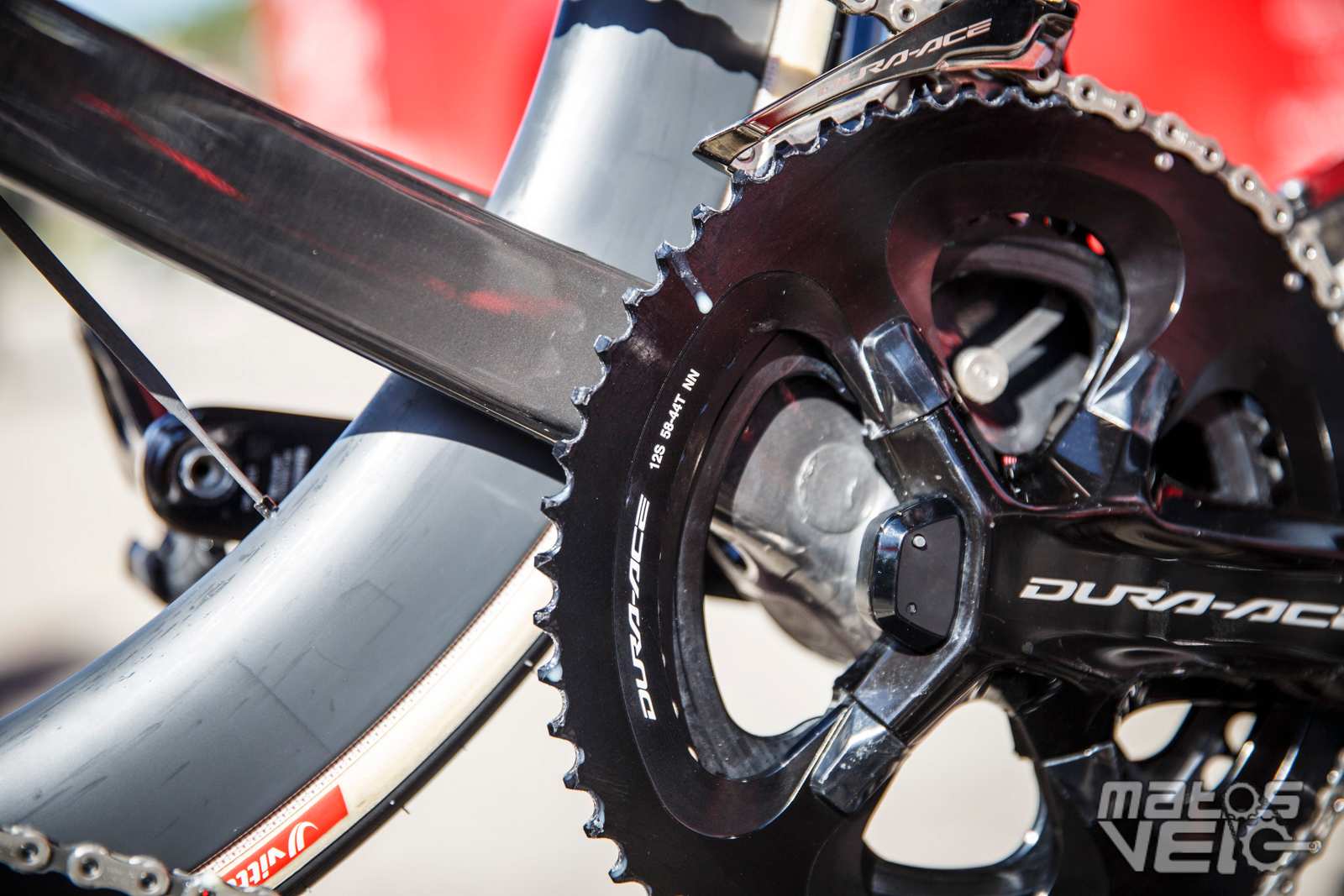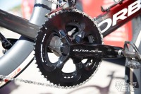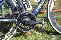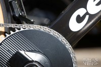 A la demande des coureurs, Shimano commence à fournir des couples de plateaux de plus en plus grands, ici 58/44, afin de "compenser" les cassettes qui ne démarrent qu'avec un pignon de 11 dents contre 10 chez SRAM.