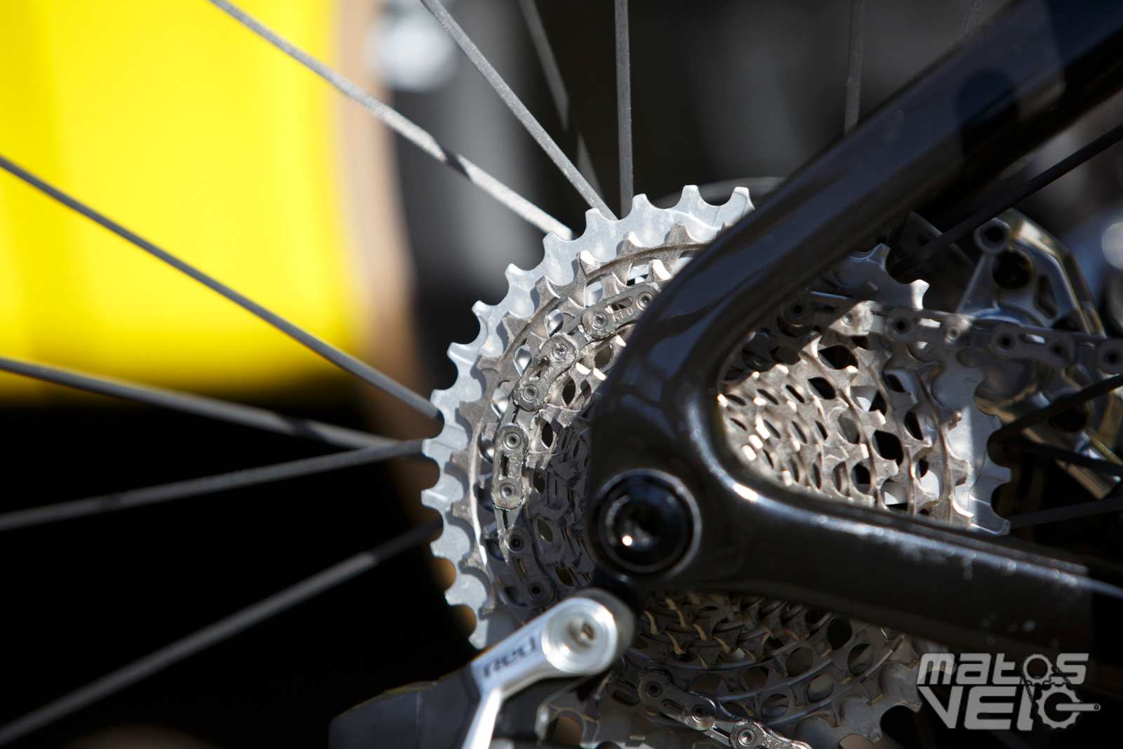 Jonas Vingegaard est clairement un adepte du mono plateau. Ici avec un plateau de 52 dents associé à une cassette 10-36. De plus en plus de coureurs sont en demande de mono-plateau et même ceux qui roulent en Shimano pressent la marque japonaise de proposer une solution mono pour la route !