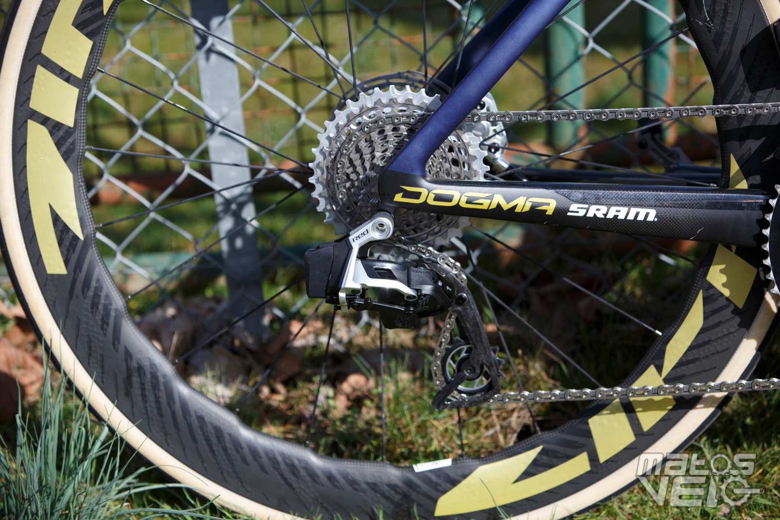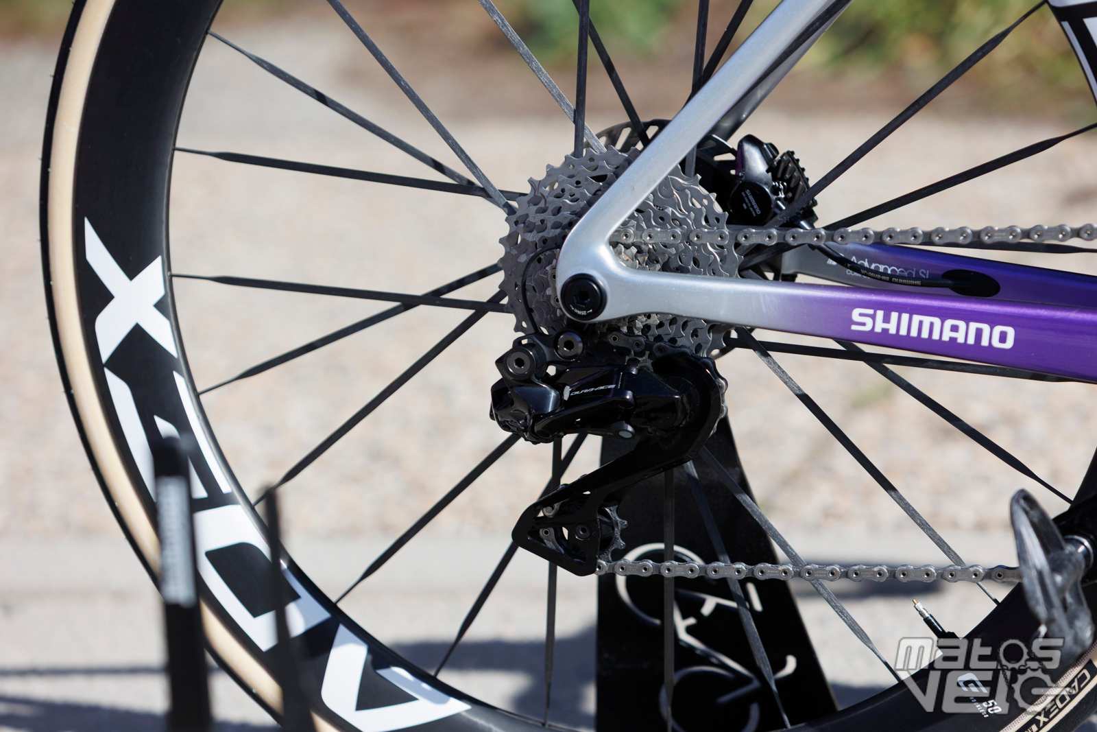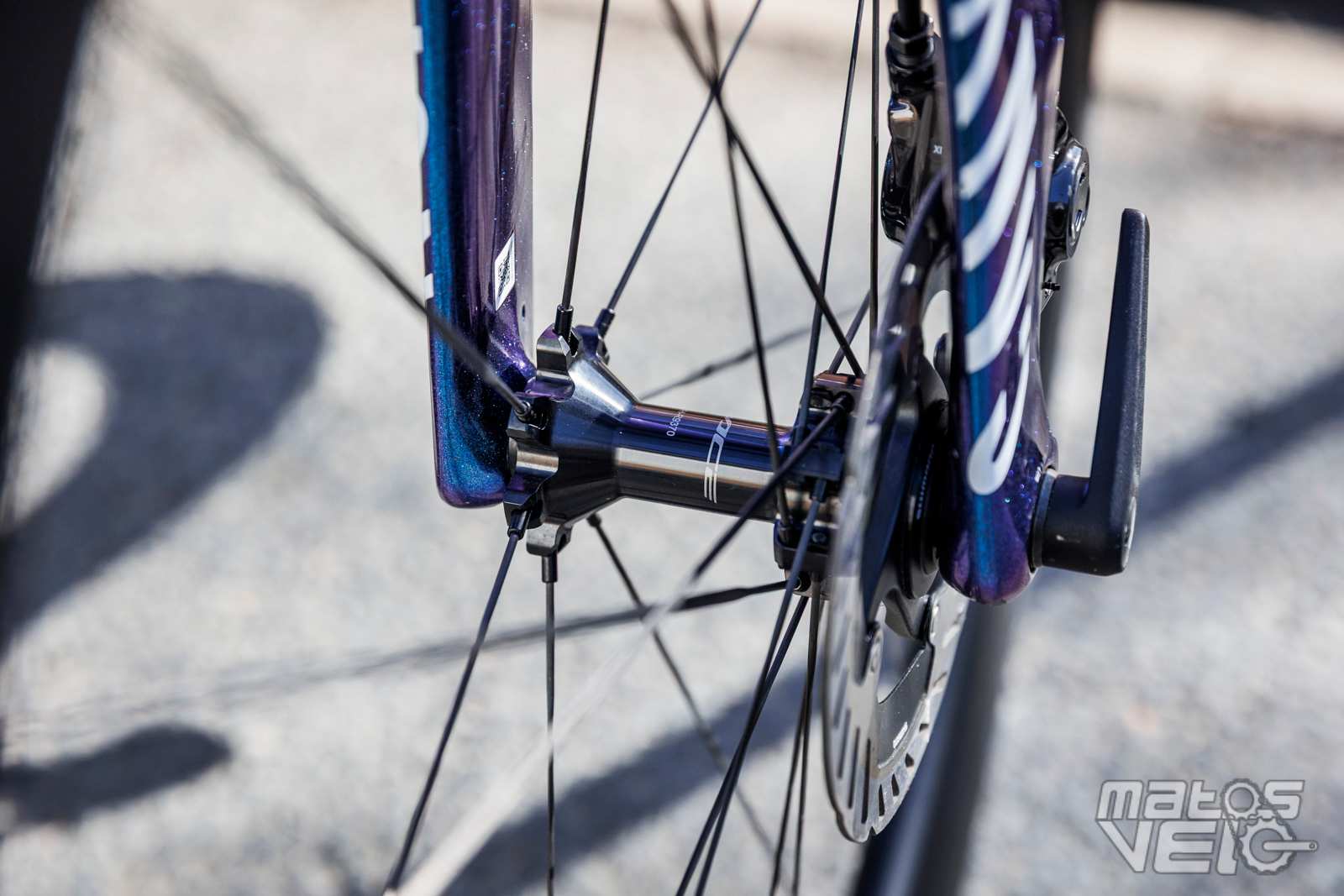 Certains le trouvent bling bling, moi j'adore le mélange de violet mat et de doré, surtout que Zipp a joué le jeu de faire des marquages dorés pour les roues.