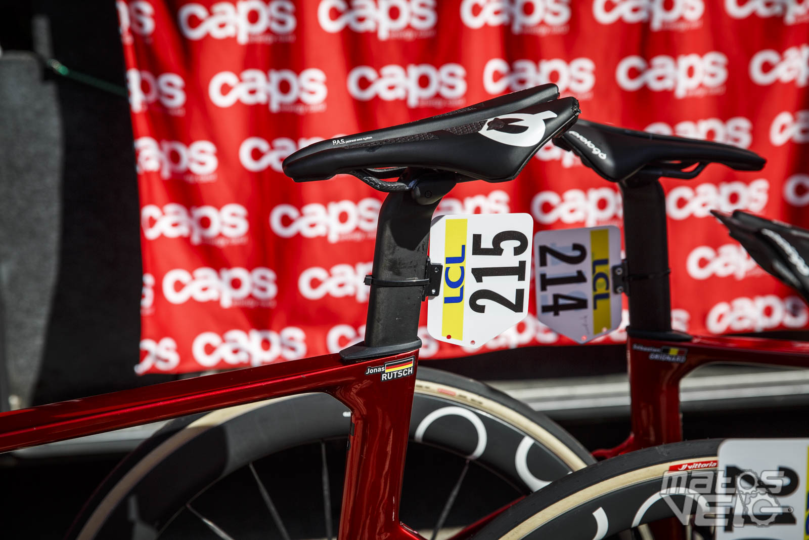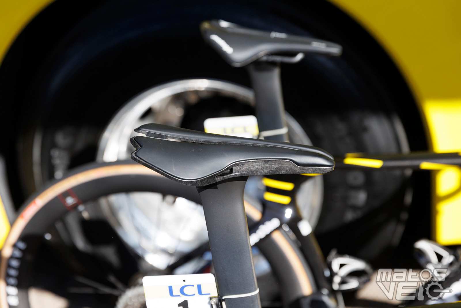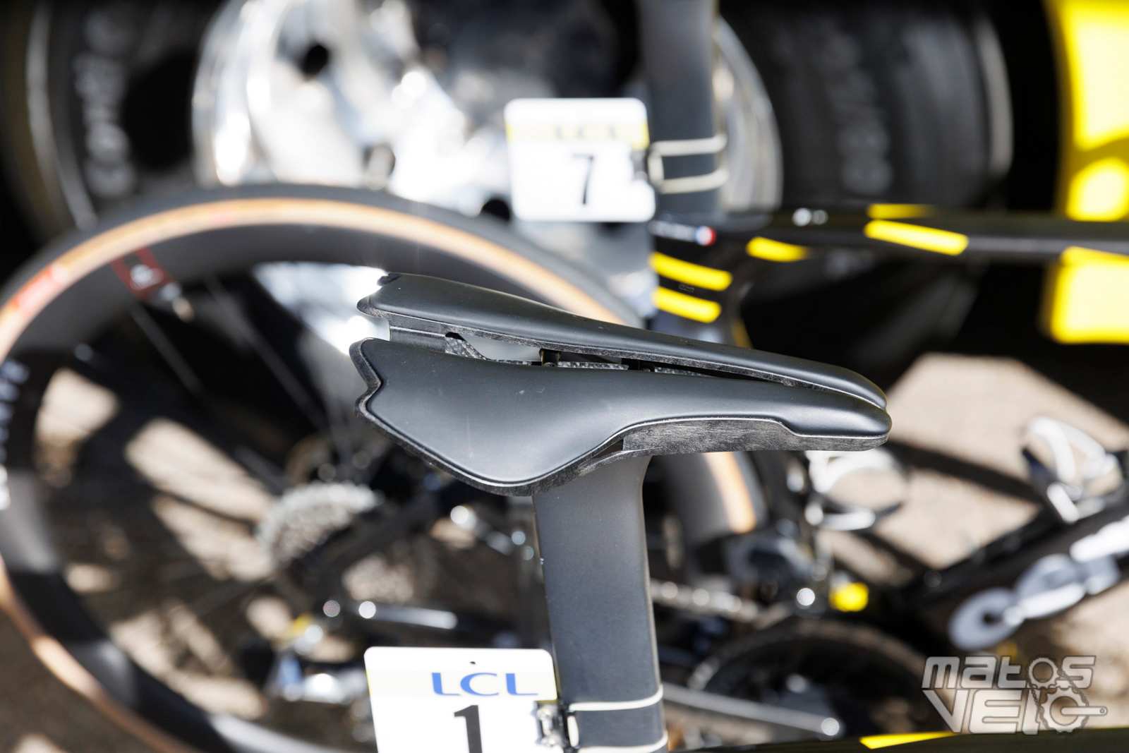 Une selle inconnue au bataillon pour Jonas, mais qui pourrait bien être un prototype de chez Prologo qui semble être une déclinaison de la luxueuse PREDATOR//01TT mais pour la route.