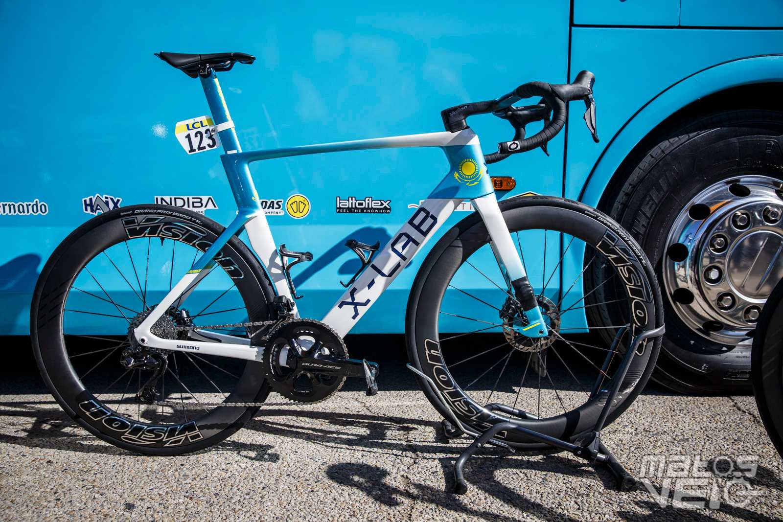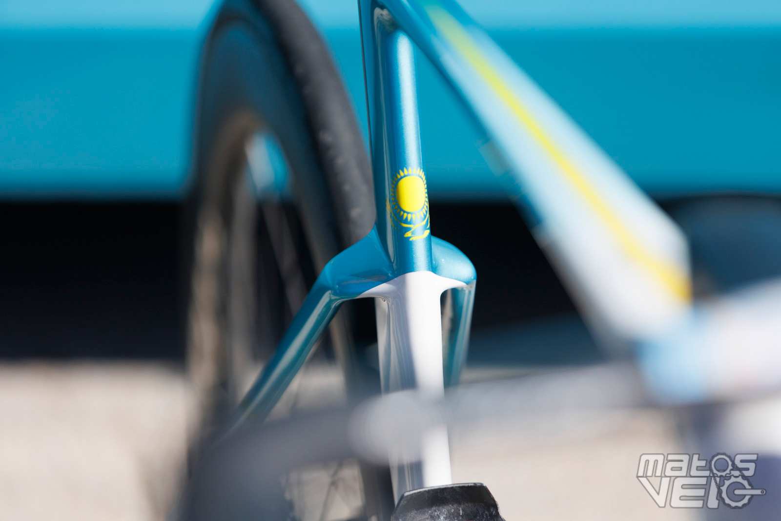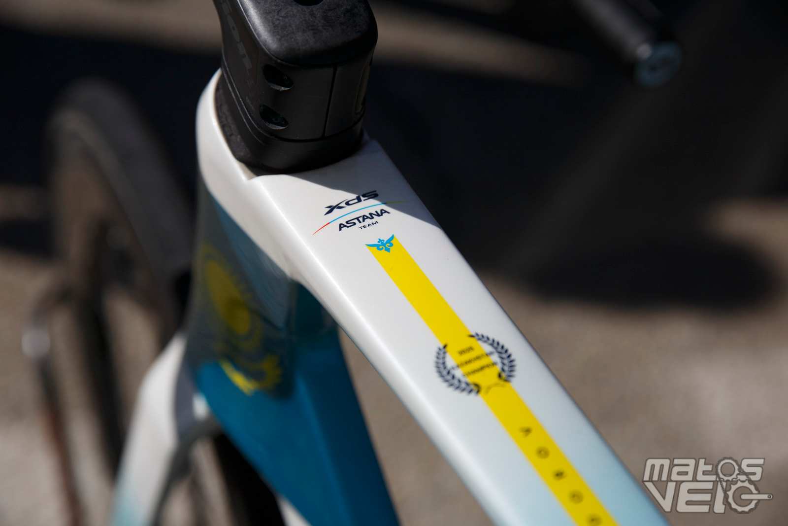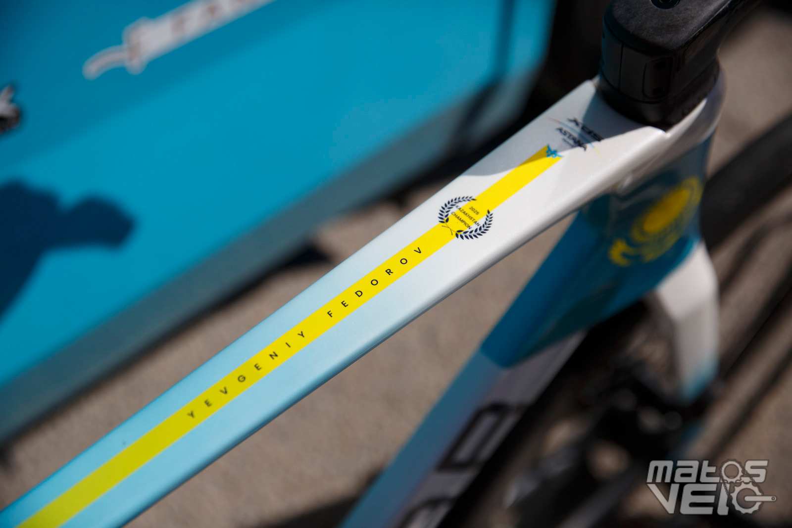Au sein de l'équipe XDS Astana, un vélo se démarquait, celui du coureur kazakh Yevgeniy Fedorov, champion du Kazakhstan sur route et contre la montre en 2025.