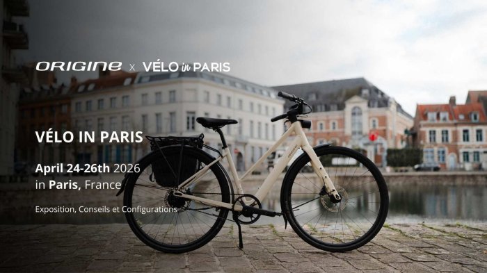 Origine sera présent au festival Vélo in Paris, du 24 au 26 avril 2026 au Parc Floral de Paris. Profitez de cette occasion pour tester les gammes de vélos urbains et VAE d’Origine sur la piste sécurisée du salon, échanger avec nos équipes et trouver le vélo idéal pour vos trajets quotidiens ou vos balades en ville. Il sera également possible de découvrir les vélos route et gravel de la marque.